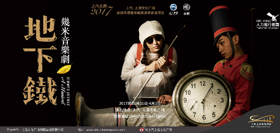 上汽·上海文化广场2017上汽名爵·原创华语音乐剧展演,如沐春风,如约而至。7台大戏,风格各异,周周有戏,轮番上演,更有2万张80元公益票全面发售。演出从2月持续到4月,包括:周杰伦作品音乐剧《不能说的秘密》、上海音乐学院倾力打造原创音乐剧《海上音》、原创音乐剧《狂奔的拖鞋》、多媒体原创音乐剧《因味爱,所以爱》、国内首部律政系原创音乐剧《律﹒诗——雷经天》、原创音乐剧《紫石街》、幾米音乐剧《地下铁》。此次参展的音乐剧作品,无论剧目数量、场次还是综合品质,均创下历年新高。而作为唯一一部来自中国台湾地区的演出,《地下铁》因其璀璨的星光与经典的原著更是吸引了众多观众的目光。