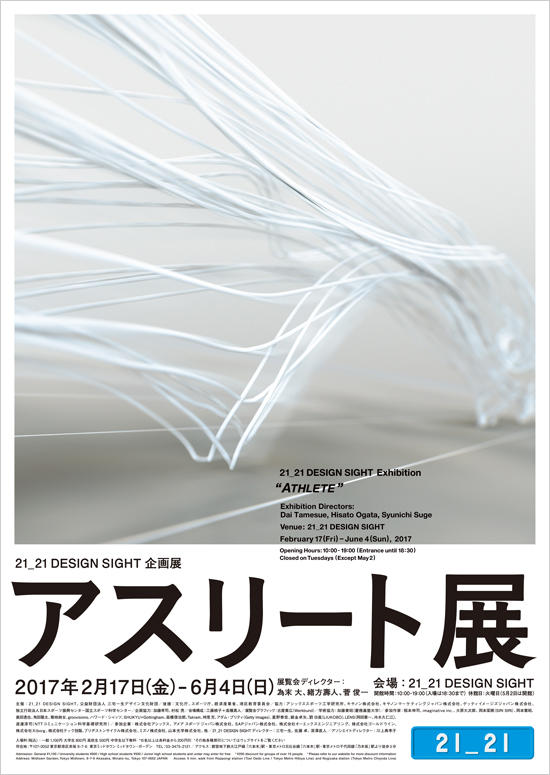 由21_21 DESIGN SIGHT、三宅一生公益基金会主办的“运动员展”展览2017年2月17日- 6月4日在21_21 DESIGN SIGHT开办。以运动员为核心的《运动员展》除透过影像与照片展示运动员的身体构造之外,同时也藉由互动展览提供来者探索与控制身体的体验,并提供有关各类型运动的最新技术、装备与情报,并从设计的角度来全面解读「运动员」这个结合力与美的职业。