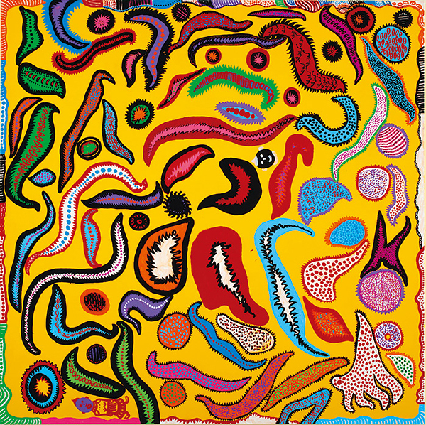 东京国立新美术馆也将其作为开馆10周年的担当大展之一,重量级不可言喻。这个10岁起就遭受精神病困扰的伟大艺术家,在这场展览的发表会上说“自己的人生就是为艺术展开的”,所以87岁高龄的她仍然热爱和坚持创作。展览中,除了她职业生涯初期的代表作和“大花朵”、波点和南瓜等近100件我们所熟悉的、带有明显“草间弥生”个人符号的经典作品之外,还会首次展出大约130幅,她从2009年着手开始创作的《わが永遠の魂》绘画系列作品。