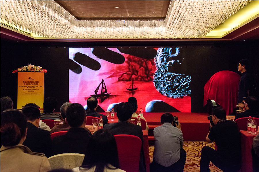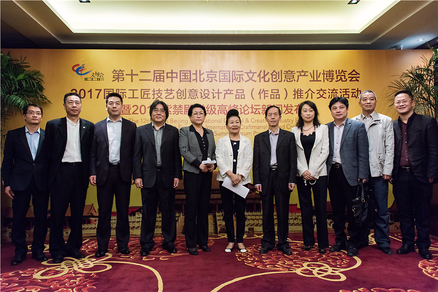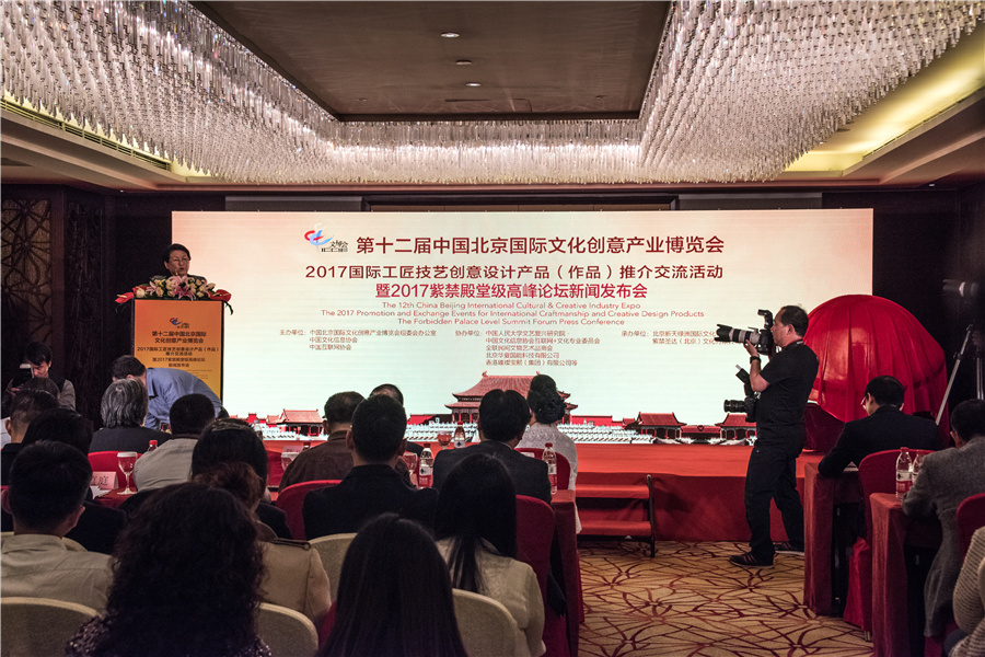 第十二届中国北京国际文化创意产业博览会-2017国际工匠技艺创意设计产品(作品)推介交流活动暨紫禁殿堂级高峰论坛全球新闻发布会于2017年4月26日下午两点在北京中国大饭店隆重举行。