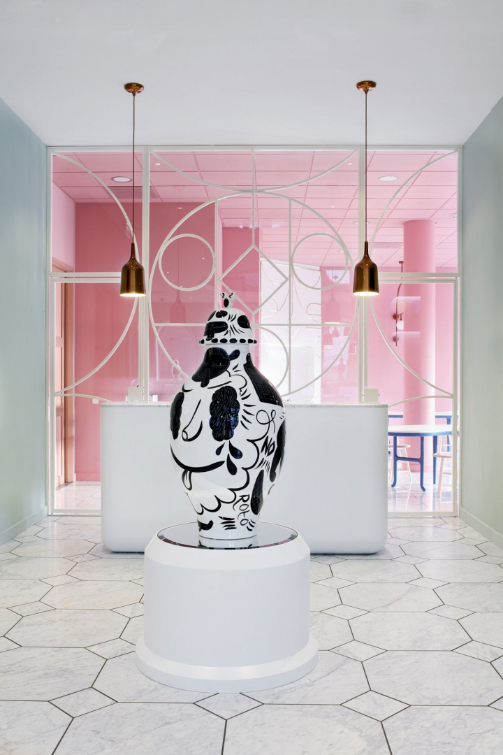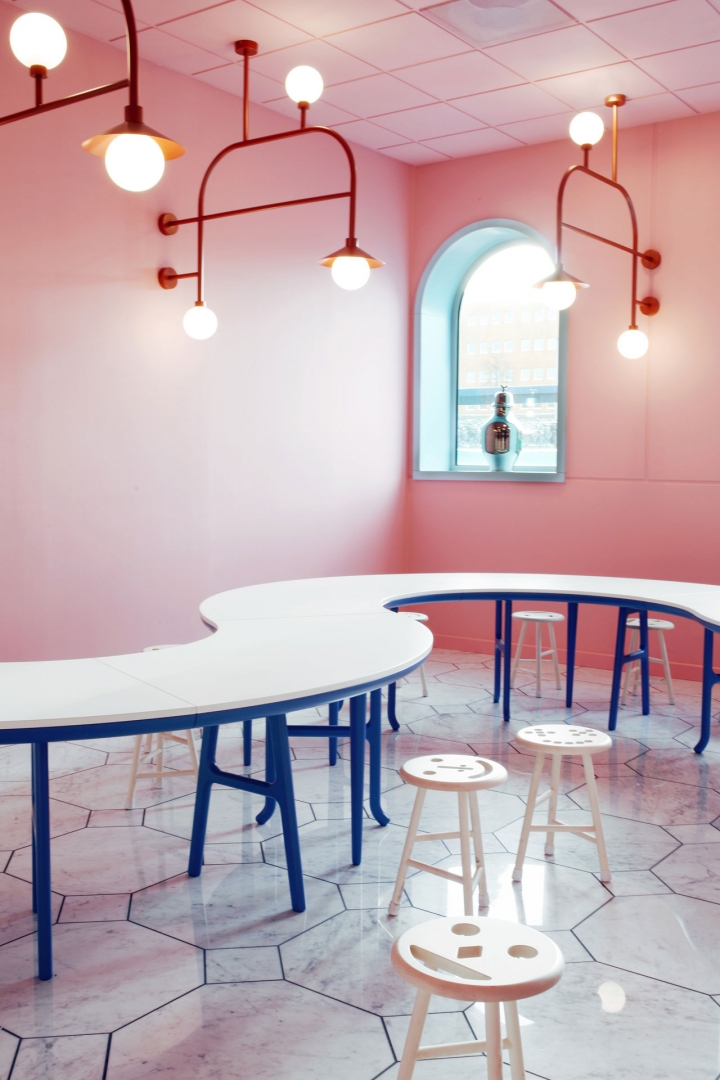 西班牙鬼才设计师Jaime Hayon设计的格罗尼根博物馆充满童趣的Discovery Space互动空间。整个空间充斥着简单又好看的细节:空间里大胆的配色,造型独特的家具,像是走进了童话森林,任其天马行空。粉色空间里的头顶上有仿照树枝的特制吊灯,而灯泡就像站在树枝上的鸟,还有像小怪一样面貌的凳子;一个看起来像蛇的大型工作台占据了工作室的大半空间,鼓励着访客们相互交流。除了Jaime Hayon,还有谁会想到创造一个基于丛林的工作室?Jaime Hayon是西班牙鬼才设计师,这个格罗尼根博物馆内部新扩建的 Discovery Space,是一个供访客休息、交流、通过亲手学习发挥创意和探索各种原料的空间。该工作室可供学校团体使用,周末则为游客开放讲习班,还可以请到博物馆相关的老师协助。此外,该工作室还用于特别招待会,讲座和小型表演。