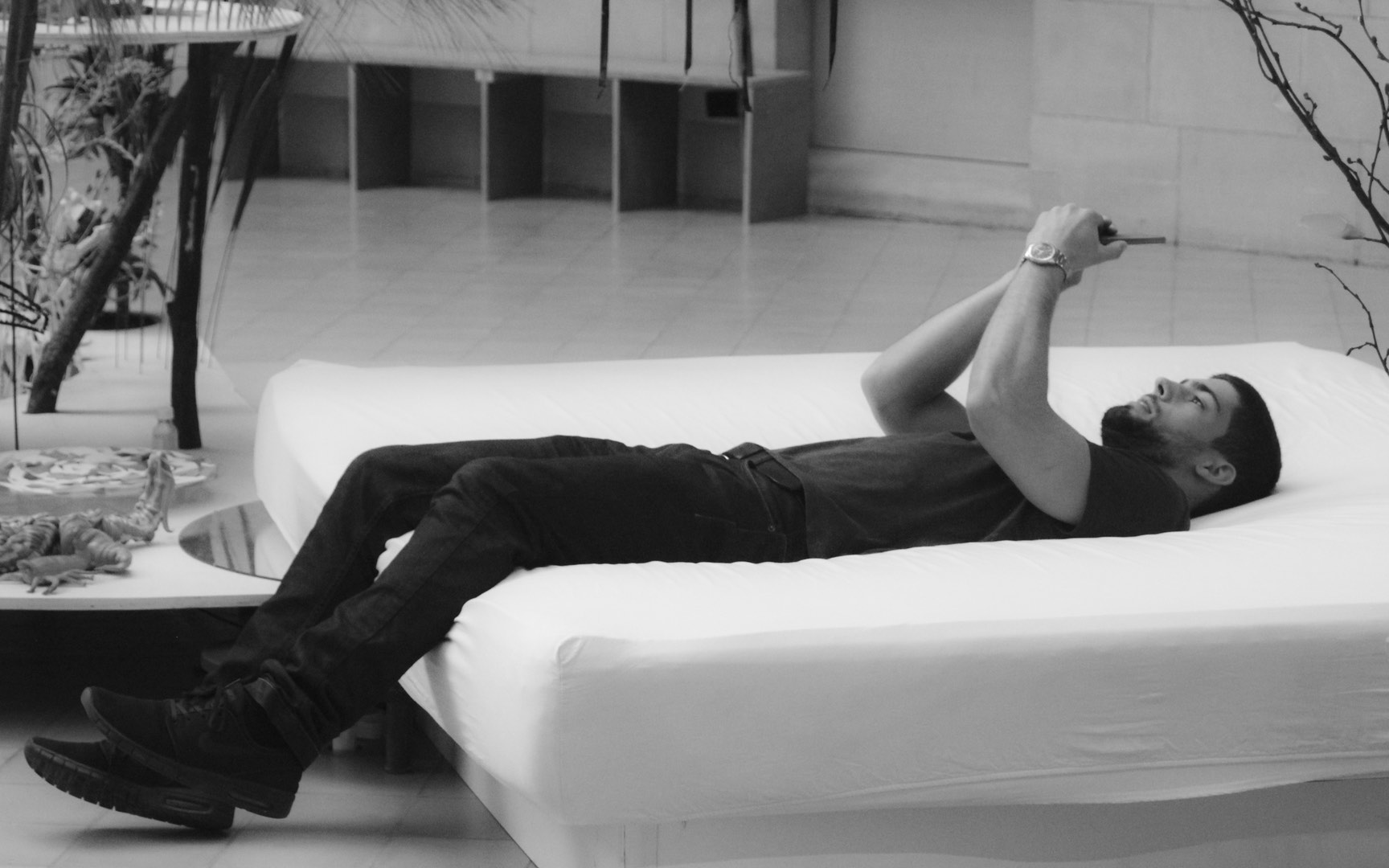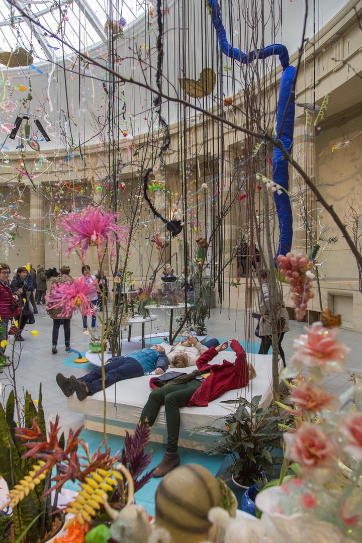 Swiss artists Gerda Steiner (1967) and Jörg Lenzlinger (1964) are known for their site-specific installations that invite the viewer to be integrated into their work that is made of branches, plants, flowers, and all kinds of objects. Their expansive and awe-inspiring displays take full advantage of the surroundings and immerse the viewer in a realm of cohabitating opposites.