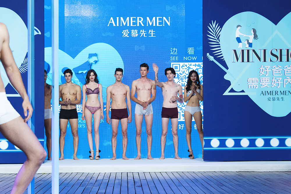 MINI秀中的另一大“亮点”就是采用全程网络直播的形式,让不能亲临现场的广大粉丝,也能感受到同样热烈的秀场氛围,更能与到场的观众一起“边看边买”!大家不仅可以通过网络实时观看赏心悦目的走秀表演,更能通过“边看边买”的购物新方式,同步在爱慕全国专柜、以及爱慕官方商城、天猫旗舰店、京东旗舰店购买到AIMER MEN爱慕先生的2017夏季新品与为父亲节专属定制的“父爱礼盒”。
