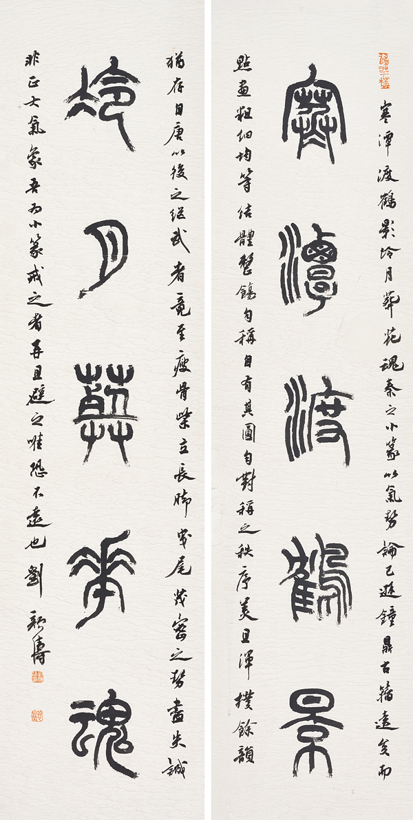 刘颜涛 4尺对联(寒潭渡鹤影,冷月葬花魂)134cm x 34cm x 2