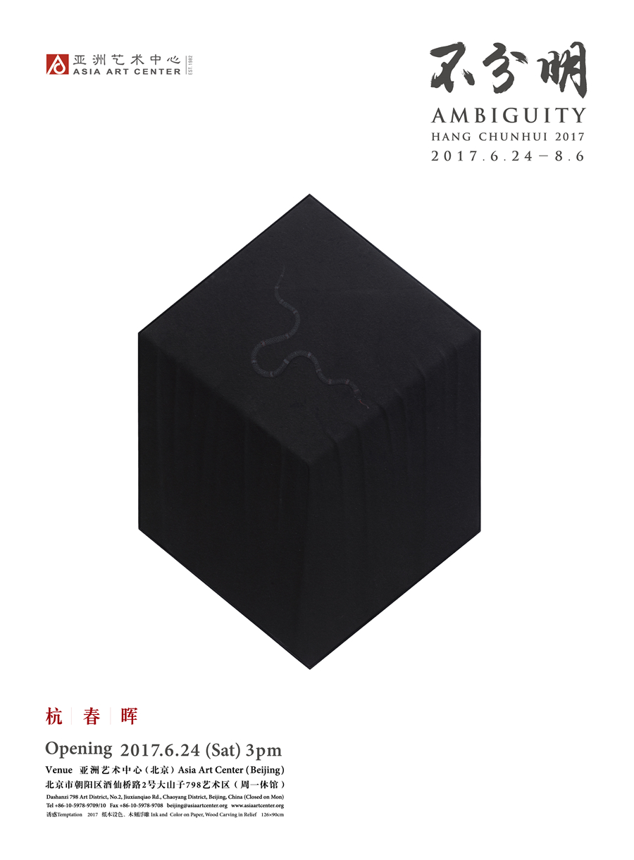 亚洲艺术中心(北京)将于2017年6月24日举办展览“不分明—杭春晖2017”。在杭春晖的创作历程中,每一个阶段都带有对传统的实验与创新的意味,他的创作态度时刻保持着更迭与重塑。此次展览将呈现艺术家2017年最新作品。