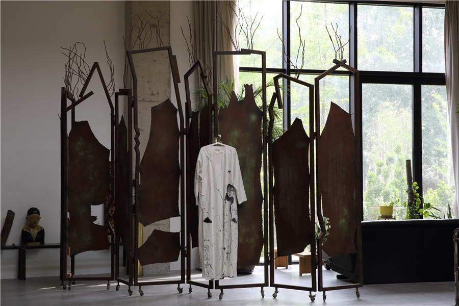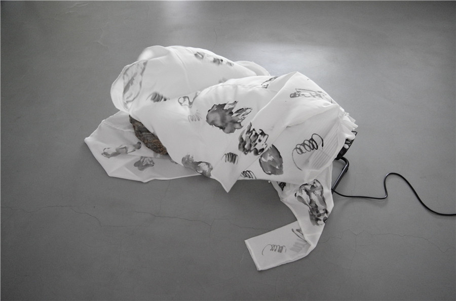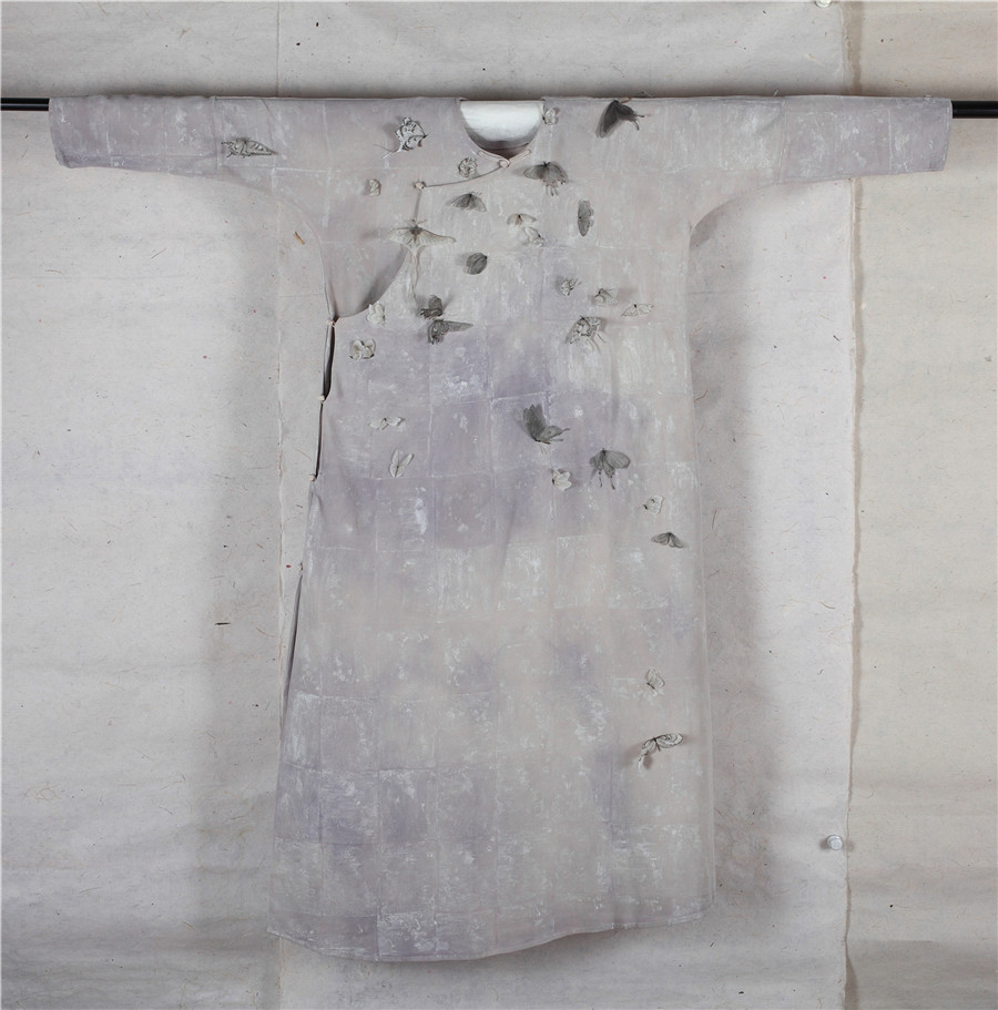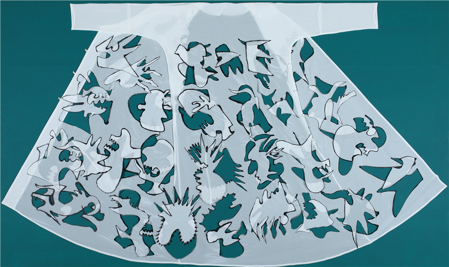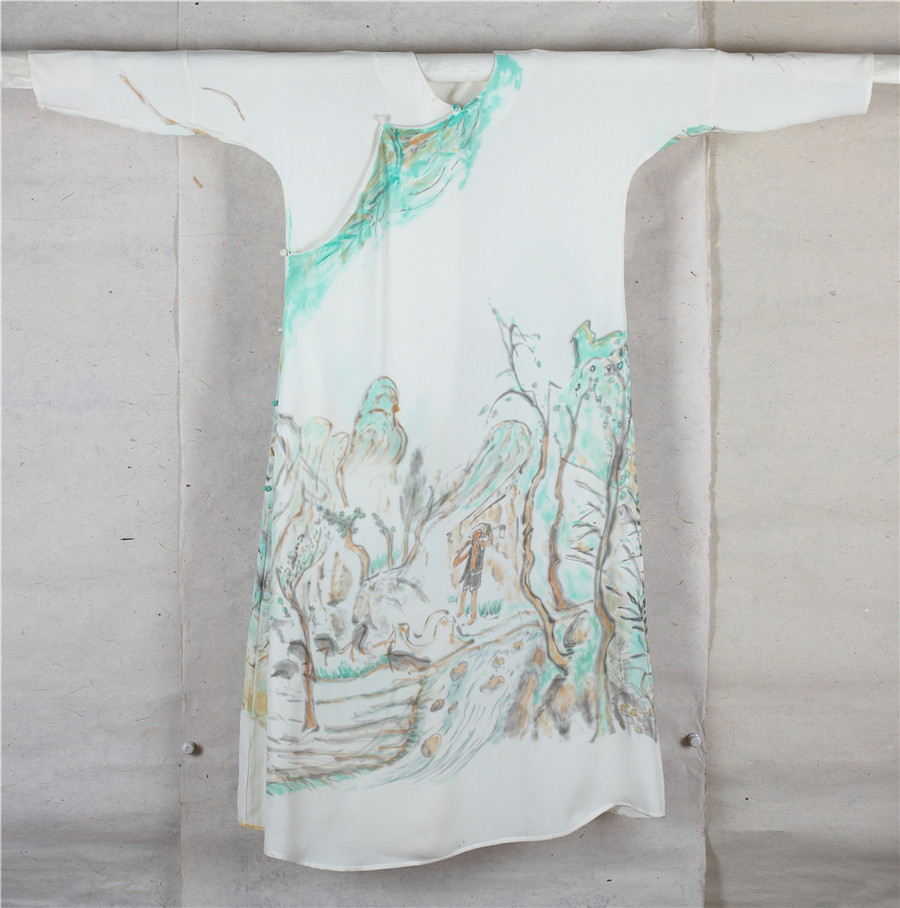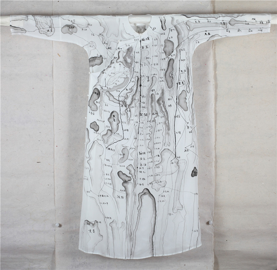 邱志杰 通关 丝质衣袍水墨160x150cm 2017