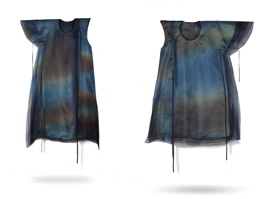 马路 & 杨阳 无名之袍 真丝双绉袍服 绞撷植物染色 160x150cm 2017