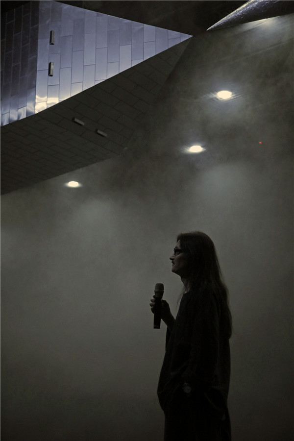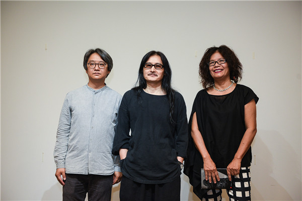 ▲左起策展人吴洪亮,艺术家李真,台北当代艺术馆馆长潘小雪