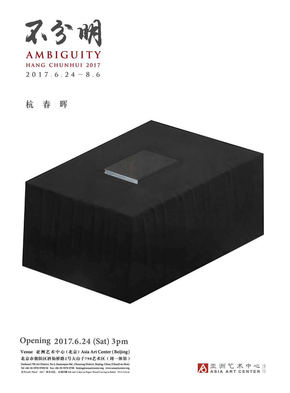 “不分明 - 杭春晖2017”于6月24日在亚洲艺术中心(北京)开幕,此次展览呈现艺术家最新作品三十余件。在杭春晖的创作历程中,每一个阶段都带有对传统的实验与创新的意味,他的创作态度时刻保持着更迭与重塑。展览将持续至2017年8月6日。