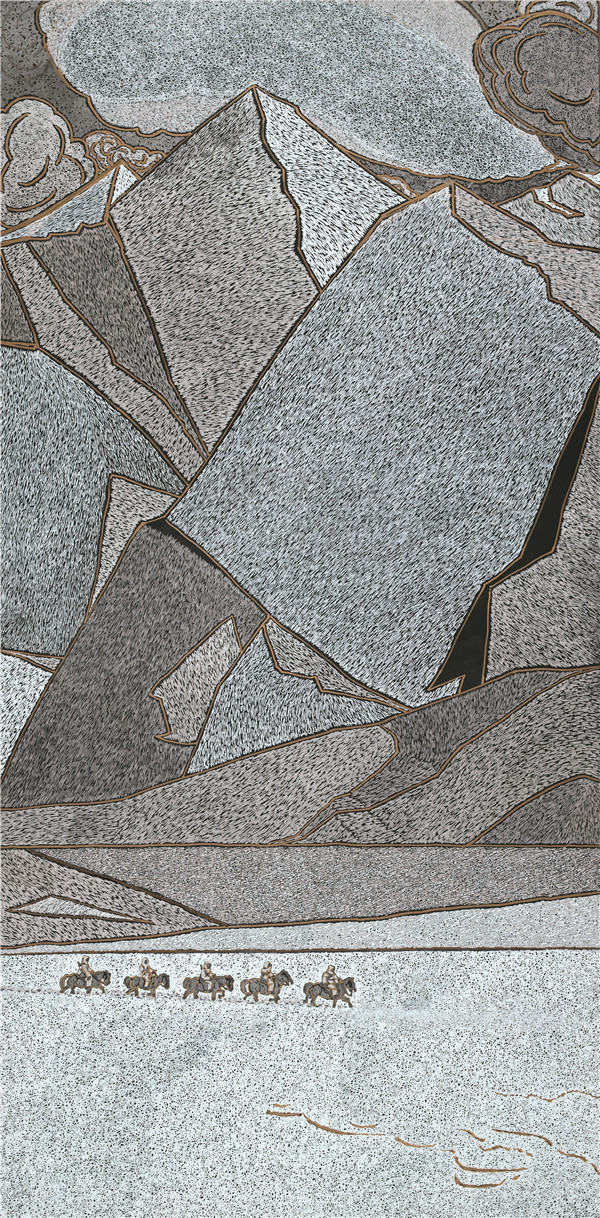 章红兵《高原巡逻兵之二》纸上作品 100×50cm 2014