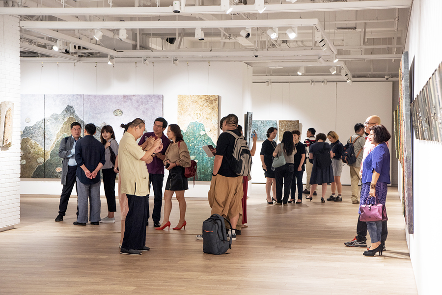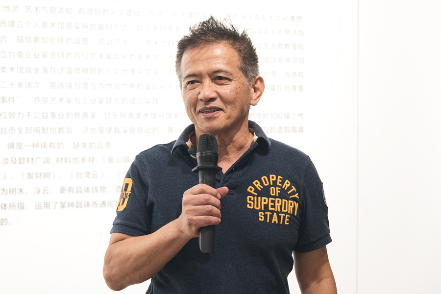 爱慕美术馆馆长潘建宏先生致辞爱慕美术馆馆长潘建宏先生感谢各位到场支持,本次展览主题“共时”寓意临近中秋佳节,两岸朋友共同为曾老师祝福。潘馆长表示,曾老师对艺术的态度以及艺术创造的状态很令人感动,祝福《共时》、《天地》两大个展圆满成功。