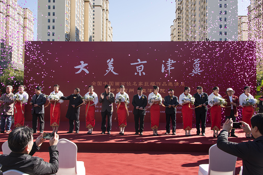 在党的十九大胜利闭幕之际,《大美京津冀》全国中国画100位名家巨幅作品邀请展在河北省霸州市益津书院隆重开幕。本次展览由国家民族画院、霸州市人民政府联合主办,中国美术家协会学术支持,北京美术家协会、天津市美术家协会、河北省美术家协会、中国艺术研究院美术创作研究中心协办,亿龙集团承办。