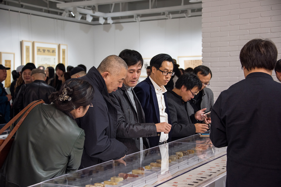 ▲“衣以载道-王新元书法篆刻作品展”开幕式2017年10月28日,由爱慕股份有限公司主办,爱慕美术馆承办的“衣以载道-王新元书法篆刻作品展”于爱慕美术馆隆重开幕。无数次引领中国时尚风潮的王新元以艺术家的崭新视野,完成从时尚艺术到传统艺术的跨越和裂变,为观众呈现了宁静超脱的书法篆刻作品。