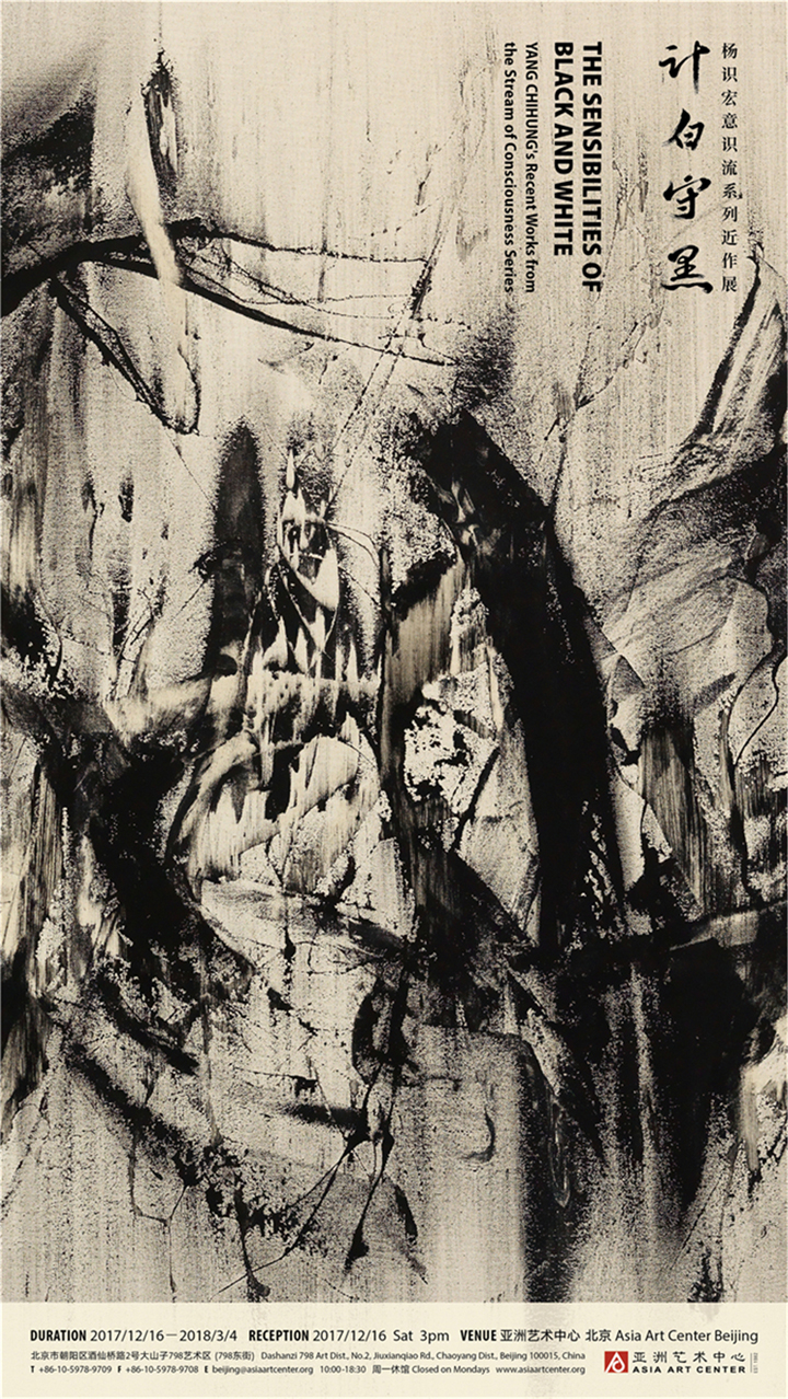 ▲幽微 Mystical Transition 102x142cm 布面丙烯Acrylic on canvas 2016Asia Art Center is pleased to announce “The Sensibilities of Black and White – Yang Chihung’s Recent Works from the Stream of Consciousness Series”– the exhibition will be on view from December 16th, 2017 to March 4th, 2018. Artist Yang Chihung (b.1947) graduated from the Department of Fine Arts at the National Taiwan College of Arts(currently known as National Taiwan University of Arts), and immigrated to New York in the late 70’s. Yang Chihung has been active in the New York art scene since the 1980’s, and continues to create work to this day, becoming one of the most significant abstract expressionist painters since ZaoWou-Ki and Chu Teh-Chun. He was awarded the “Asian-American Artist” award from the Governor of New York in 1989, and was the first artist of Chinese descent to be awarded the Clocktower residency. He began writing reports and critiques on art, chronicling the developments of Western art; his writings were published in “Chung Po” in New York, “Artist Magazine” in Taiwan, and in the art magazine “Lion Art” which grew prominent on both sides of the strait, providing in-depth introduction and inspirations to a nation that was lacking in its sources of art information. For the Chinese art world then, it truly opened a door to the latest Western art news and information, imparting contemporary art knowledge to many artists.