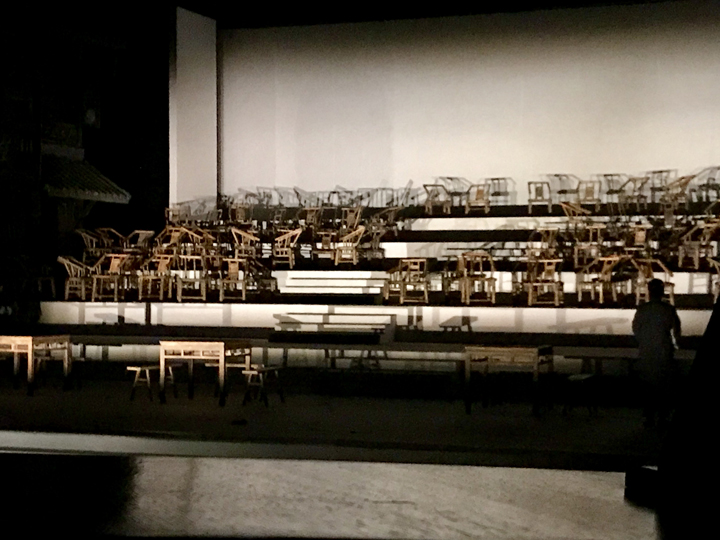 舞台,为“调度”提供支撑,舞美,尽心布置一种基于抽象和提炼的幻象,此幻象类似中国美学的意象,皆为情感表达。李六乙自幼跟随祖母在成都泡茶馆,无意中完成了中国传统美学思想中的观物取象的仰观俯察,有关茶馆的舞台舞美无需多虑。