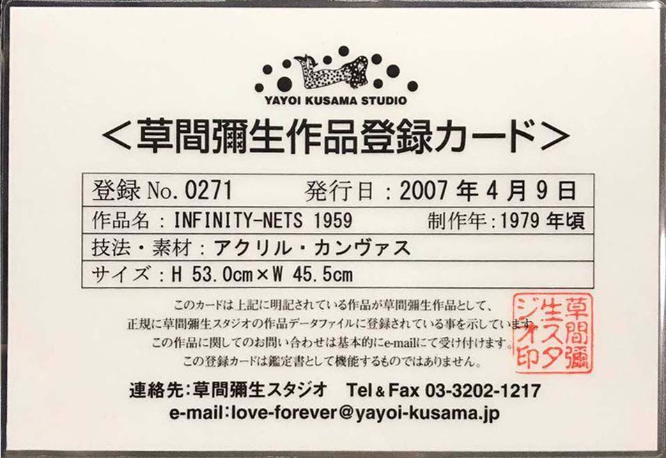 草间弥生「INFINITY—NETS」 收藏证书