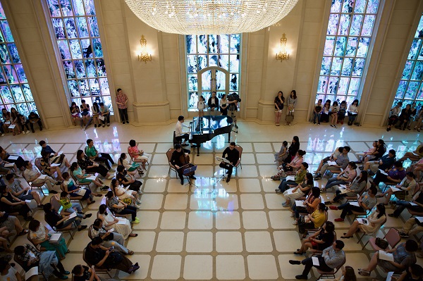 我们在每个月的第三个星期五是文化星期五,后来逐渐发展成白领之夜,这个白领之夜我们受到陆家嘴金融城发展处的很大协助,即时会有免费开放的名额,我们设计不同主题的活动,然后接受预约报名参加,来参加的观众包括白领,还包括亲子,有的时候是音乐会,有的时候是讲座,有的时候是一些活动,然后参观展览、文物,然后看看美丽的江景,这是一个很好的文化抒压的方式。白领之夜现在已经变成震旦博物馆的一个特色活动,事实上也跟陆家嘴的白领产生了很好的联结。我们震旦博物馆还有很坚强的志愿者导览团队,团队里面其实很多都是陆家嘴各大行业的白领,有的很多是高级主管。我们跟区域建立着很强的联结关系,这是我们很重要的一个支持力量。