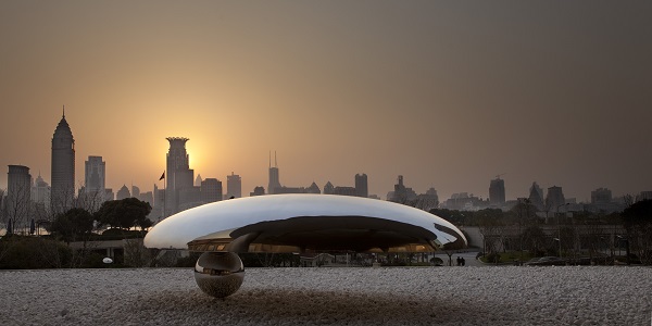 震旦博物馆入口雕塑《宇宙漂浮的蛋》,艺术家Tom Shannon