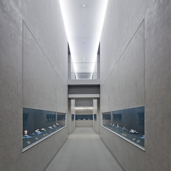2009年,创办人去欧洲考察,看到很多很好的博物馆,当然也包括安藤忠雄先生设计的博物馆,他发现,一座好的博物馆,它的建筑空间跟展示的文物必须是相互唱和配搭的,所以,当时他就决定邀请安藤忠雄先生来设计震旦博物馆。从2009年计划启动,到2012年建成,2013年开馆。