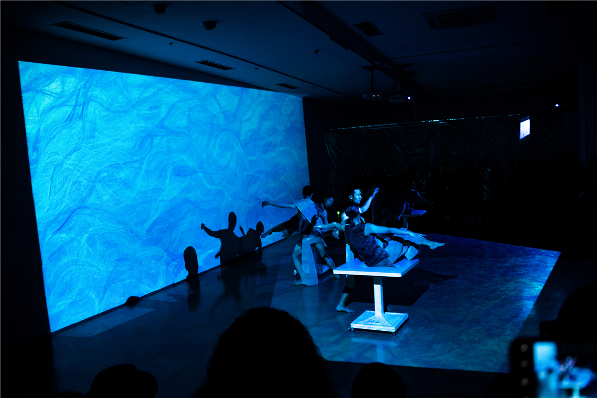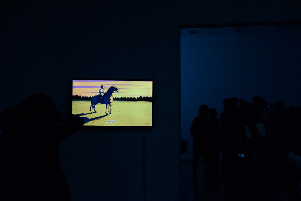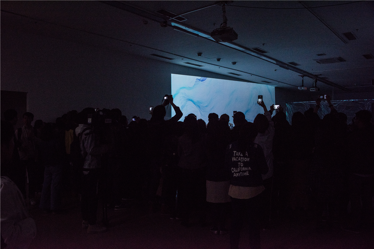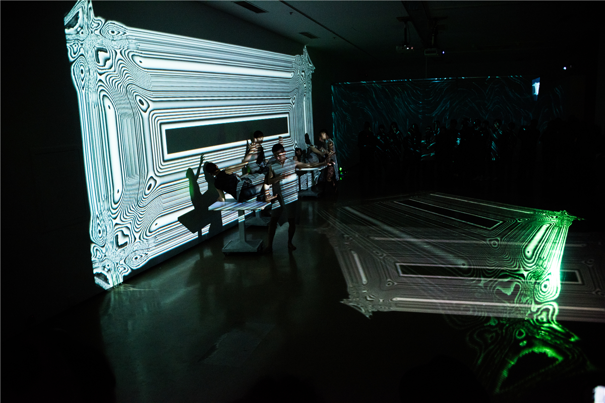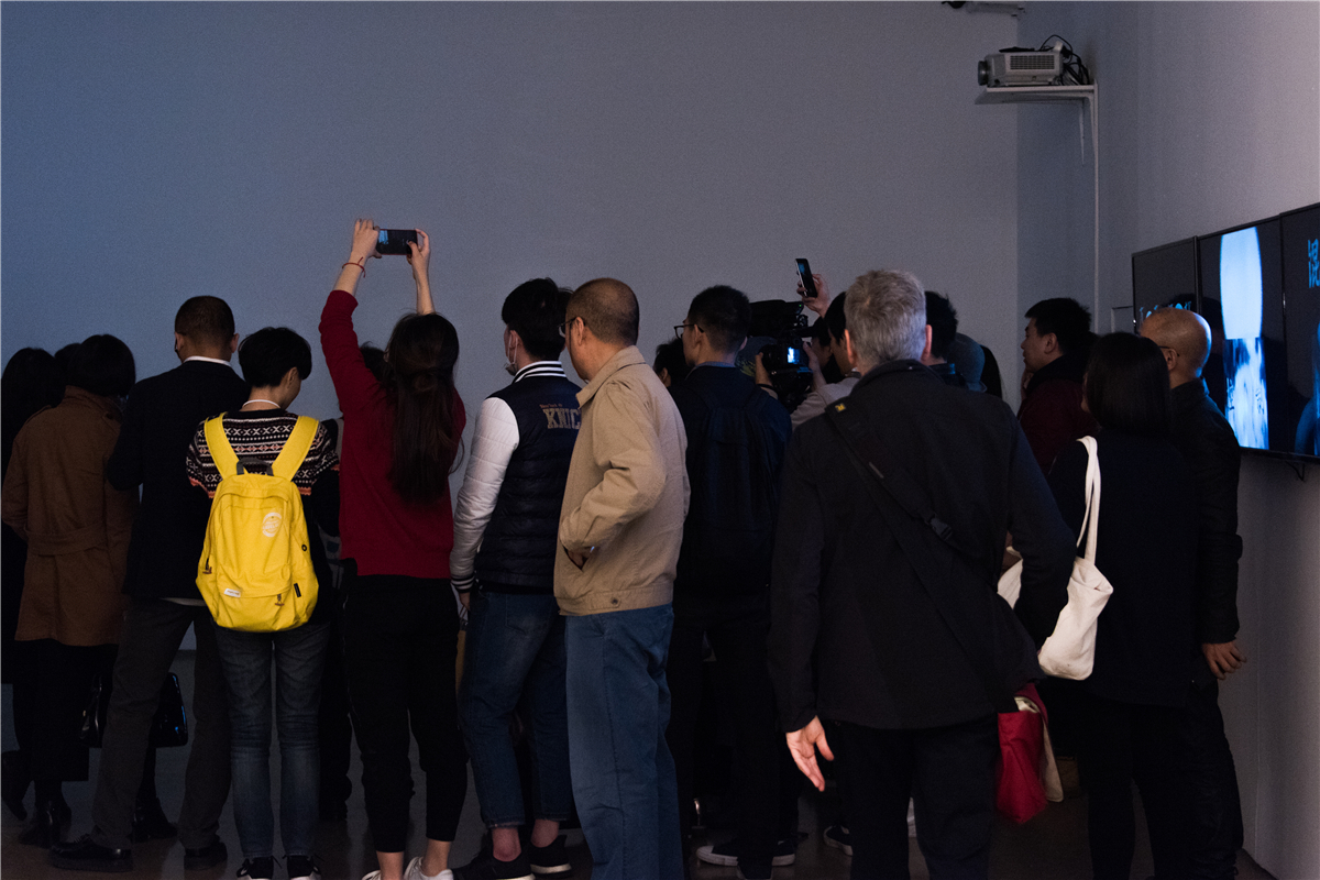 展览现场,新媒体作品展厅本次展览由北京电影学院侯光明书记任出品人,北京大学彭锋教授任策展人,电影学院当代艺术研究院冯放教授任艺术总监。邀请吴为山、徐里、刘巨德、谭平、胡伟、丁方、王华祥、黄建成、孟禄丁、张方白、顾黎明等在国内外有影响的艺术家与电影学院孙立军、王鸿海、刘旭光、宫林、冯放、刘跃军等师生共同组成展览团队,研讨邀请著名评论家朱青生、殷双喜、张子康、张晓凌、余丁、杨卫参与。开幕式表演为侯莹舞蹈剧场。