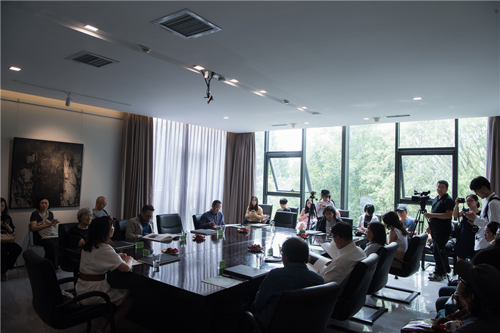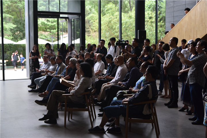 展览开幕式于15点30分正式开始,由筑中美术馆执行馆长孙莉敏主持。本次展览学术主持、中央美术学院教授邵亦杨首先致辞。在她看来,曹吉冈的作品既抽象也具象,既现代也传统,既有高古之清韵,又有现代之简约。通过人与自然的交流,呈现出了一个与自然平等交融的世界;北京师范大学教授、诗人、作家西川随后发言,感慨曹吉冈作品能够囊括现代、古典、东方、西方等诸多元素,并生发出了难得的高级品格。这个展览让观众看到了中国当代艺术中也有能够表达出深刻价值观和宇宙观的艺术作品;之后,作家、文艺批评家李陀致辞,他表示始终在关注着展览的进展。在他看来,“一个艺术家最幸福的事情莫过于拥有自己的艺术语言,并结合中国画和坦培拉这两种中西最传统绘画形式,找到了其中新的可能”。看到曹吉冈能够在创作中发现新的可能,探索出自己的艺术语言,这令他喜悦之情溢于言表,同时也感慨到曹吉冈的探索对中国当代艺术的贡献极大;中国人民大学教授夏可君随后发言。在他的“虚薄”艺术理论中,曹吉冈的作品是典型代表。他对曹吉冈作品的学术价值和高级、古典的作品气息予以了极高赞誉,认为曹吉冈的作品将为中国当代艺术贡献可贵的价值。中国当代艺术要走向世界,我们也要有责任和信心将曹吉冈的作品介绍给世界;最后艺术家曹吉冈发言,深感此次展览筹备不易,对到场嘉宾和参与展览筹备工作的筑中美术馆表达了感激之情。开幕式结束后,到场嘉宾纷纷合影留念。