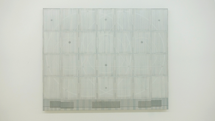 祁奋骏作品背面的语法关系,类似赋予形体成其为存在的理由,也即特定形体存在于特定位置的必然和必要性,显现在画面上,关乎作品从画面层次之间到边框甚至厚度之间的一种严谨构成方式。在画面当中,由于每件作品所选用的比例和尺寸的不同,其表面肌理大概呈现为一种随形赋色的关系,于是在整个灰白气质中,可以察觉到创作者对于质感、轻薄和弱对比色度的细微把控。甚至,在某种程度上,这种分层色度与算法统筹为一的处理方式,达成了与整个画面逻辑上的自洽。