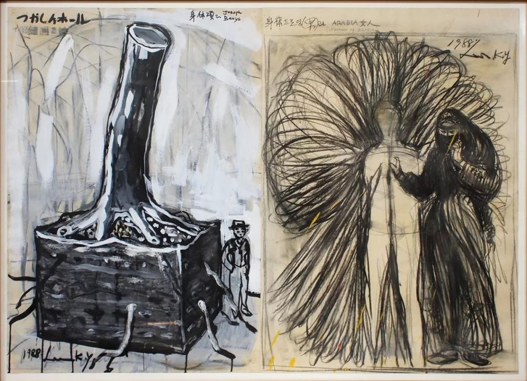 Lee Kun-yong, Lee Kun-Yong and Joseph Beuys, Body Drawing (Man) and Arabia Woman, 1988 © Lee Kun-yong
