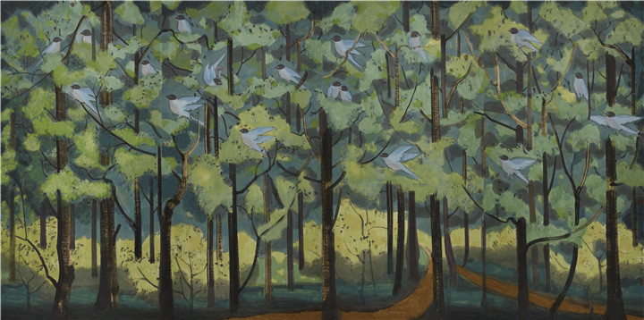 刘巨德 灰喜鹊 水墨纸本设色 250cm×501cm 2017