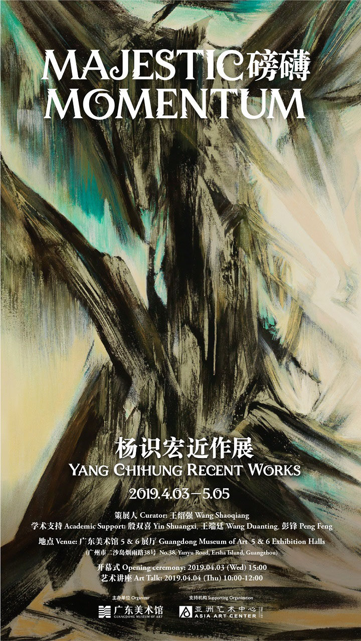 Asia Art Center is pleased to announce the Opening of Majestic Momentum - Yang Chihung Recent Works at Guangdong Museum of Art on April 3rd, 2019. The exhibition marks a sequential milestone peering shrewdly into the artist’s expansive oeuvre since his solo exhibition at The Ueno Royal Museum, Tokyo, in 2015. The organizer of this exhibition is Guangdong Museum of Art, Asia Art Center as the supporting organization. Wang Shaoqiang is the curator, and three scholars: Yin Shuangxi, Wang Duanting and Peng Feng as academic support. In the display are: more than twenty pieces of monumental-sized paintings, drawings and historic documents including letters, manuscripts, photographs and print publications from the 1970s and 1980s; overall, the curation retraces the sophistication of Yang’s artistic creation toward the abstracted realm.