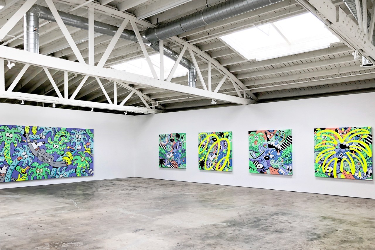 洛杉矶艺术家 Steven Harrington 以擅长创造色彩明快的趣味图案而著称,早先有过合作的 Nike 与他一同在洛杉矶展出他们的「Magic Hour」联合企划,内有各种体现 Steven Harrington 艺术风格的涂鸦画作和雕塑等一共 50 样艺术作品,由他创作的形象小狗「Mello」雕塑甚至穿上晚礼服,室外更有一整面墙布满涂鸦。为了更好地纪念此次活动,Nike 还让 Steven Harrington 设计了 Air Force 1, Blazer 和 Cortez 三双经典鞋款的别注版本,都以白底搭配彩色涂鸦的形式呈现,并且在展览现场也有发售。所有艺术品和别注商品将一直开放销售到 4 月 22 日。