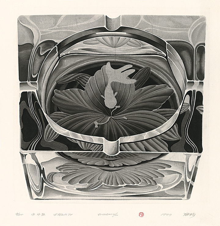 陈琦Chen Qi 水中鱼之二 Fish in the Water No.2 80×80cm 水印版画 Woodblock Print 1999