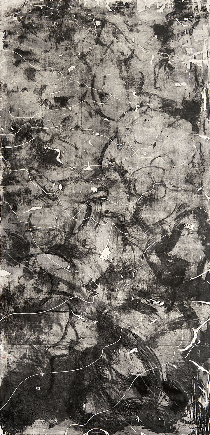 陈琦Chen Qi 双峰图 Dual Lotus 73x180cm 水印版画 Woodblock Print 2019
