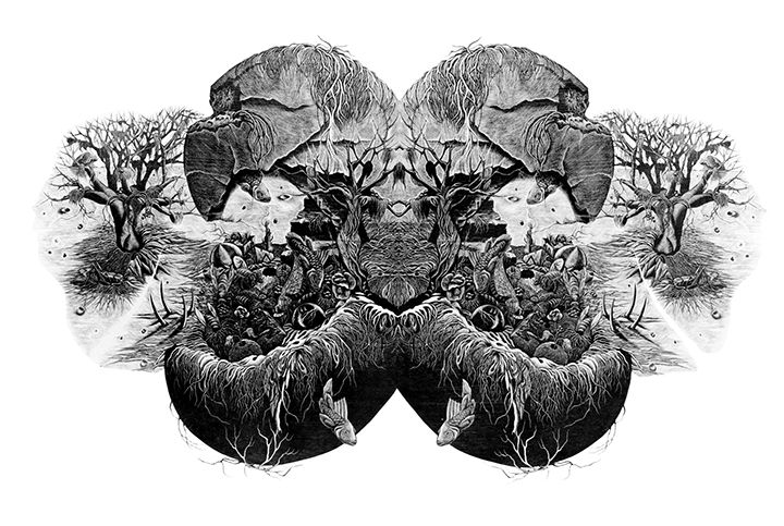 陈琦Chen Qi 初本 The Origin 图心 159.5x159.5cm;图纸 180x180cm 水印版画 Woodblock Print 2016