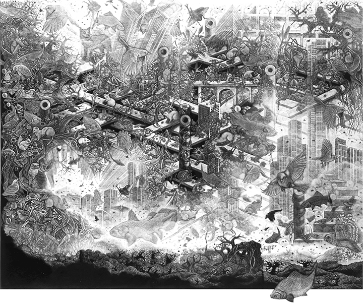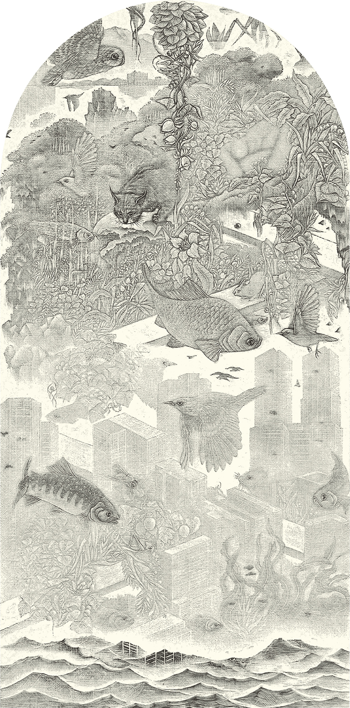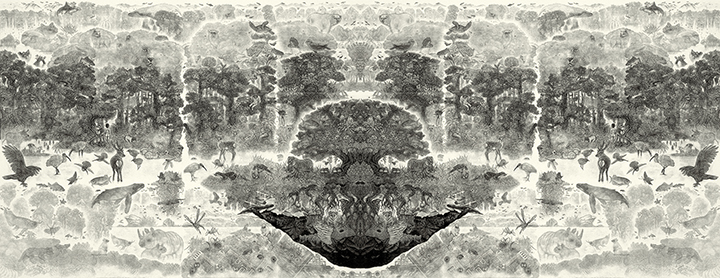 陈琦Chen Qi 天人之际Heaven and Men 240x120cm 水印版画 Woodblock Print 2019