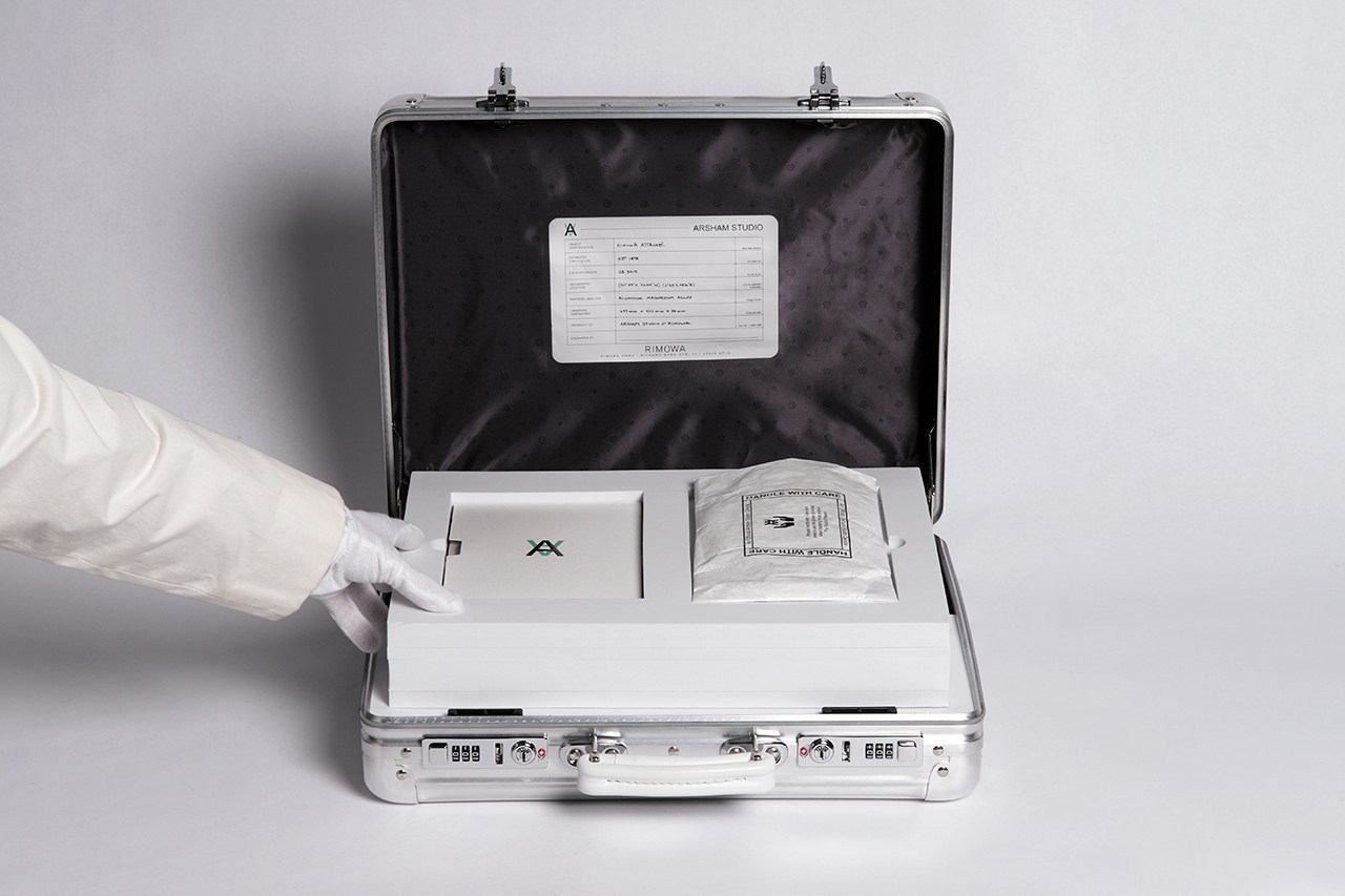 RIMOWA 联合纽约著名艺术家 Daniel Arsham,并根据后者的「Future Relic」风格共同创作了一件行李箱雕塑作品。Daniel Arsham 雕塑的侵蚀美学,使这件作品看起来像是从考古遗迹的碎片中挖掘出来一般,愈加珍贵。打开这只已经失去光泽的 RIMOWA 铝制行李箱之后,展现的内容是 Arsham Studio 的专用手套和说明手册,还有那只像考古文物的行李箱雕塑,并且每件作品都有编号。在 5 月 2 日至 13 日期间,Sotheby’s 将会在网上对一件独一无二的特殊版本进行拍卖,除了这件作品本身,还将包括签名的绘画稿件、一封来自 Arsham 的信、一组特别的贴纸。该艺术作品会在稍后的 5 月 17 日上架 RIMOWA 官网和 Daniel Arsham 官网,市售价格为 $2200 美金。