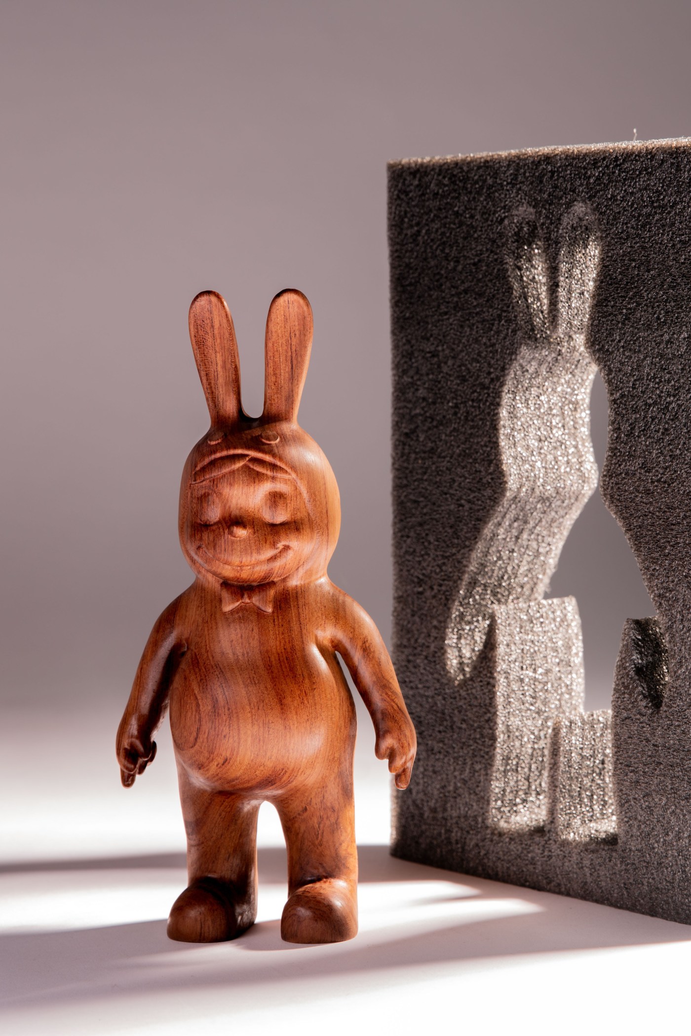 艺术家张权将于本周六在北京开启「游乐园」系列的第三站,名为「游乐园 III – 兔子失物招领中心」的全新个人展览,而由他特别打造的「Karoro」木制雕塑也提前揭开神秘面纱。这款仅限定 100 座的雕塑高约 25.5cm,设计上延续了艺术家张权的招牌「兔子」形象,除了采用花梨木制作而成外,还将附有艺术家签名的收藏证书及限定编号。