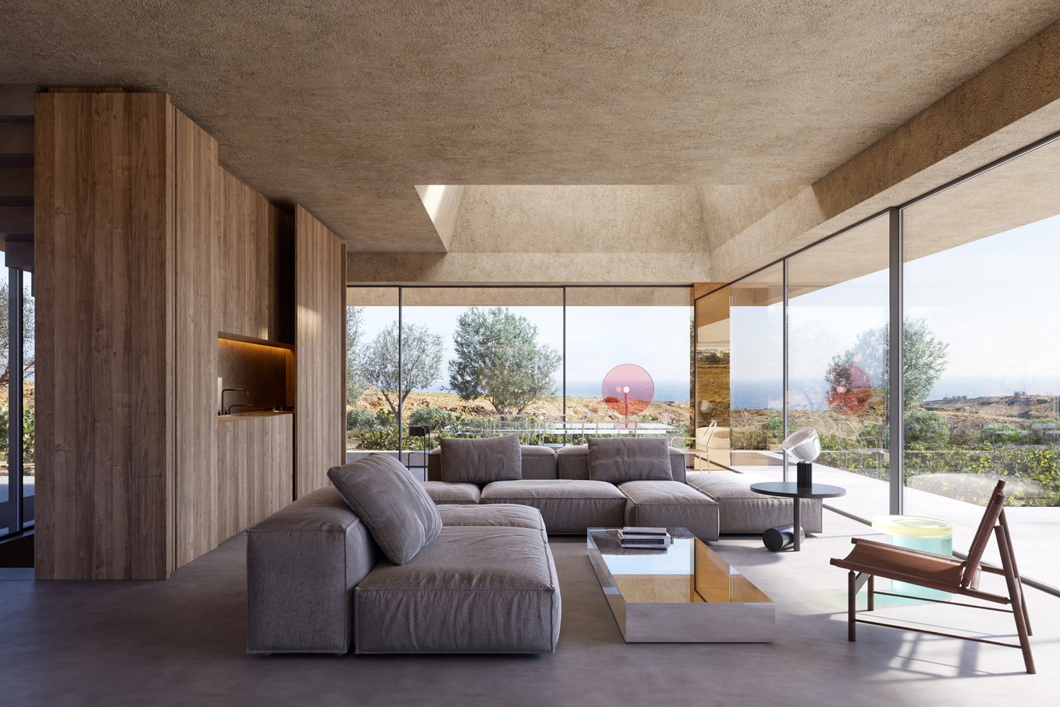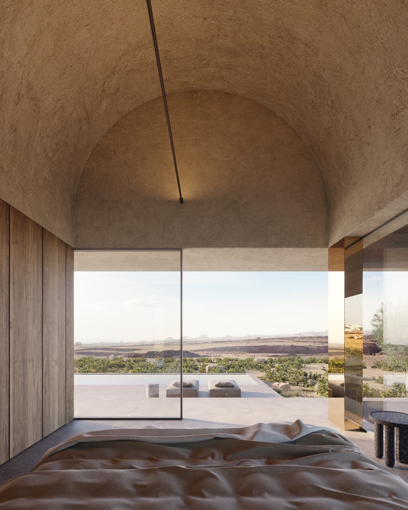 Kapsimalis Architects 建筑事务所日前公布了希腊圣托里尼岛葡萄园项目的细节部分。该项目的设计理念是在一个周围没有景观的地方建造一座土屋顶住宅空间。为了建造土屋顶,这块场地被升高了2.6米,从而形成了下面的生活空间,并以火山岩和洞穴石自然侵蚀的特性雕刻而成。
