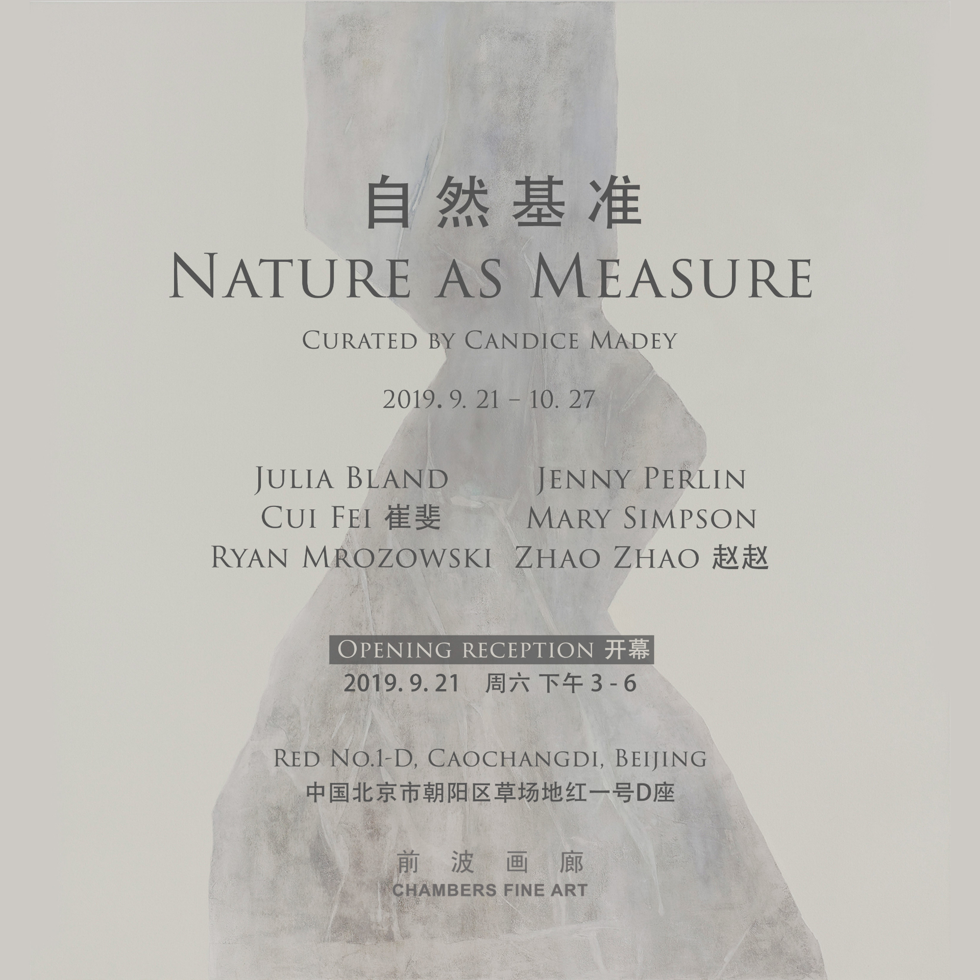 前波画廊荣幸地宣布将于2019年9月21日举办艺术家群展《自然基准》,展览囊括了六位艺术家包括崔斐、Jenny Perlin、Julia Bland、Mary Simpson、Ryan Mrozowski和赵赵,他们都是以自然的规律和结构作为作品内容的来源。尽管他们对于网格和参数的运用,使得作品富有理性、规律且有序的结构,本次展览在面对人工设计的不合理性的同时,也探索了日常自然规律中所带有的政治和社会意识。在这里,对系统的运用实际上是对于艺术界及其它领域的理性美学和有序系统带有一贯优越性的质疑。这次展览也可以被称为“自然文化”,因为每位艺术家都通过对自然环境的研究,发出了对跨文化,永恒和人类活动的思考。该展览与维斯·杰克逊(Wes Jackson)的书籍同名。作为可持续农业发展运动的先驱,杰克逊在1967年创立了土地学会。在这本书籍中,他探讨了生态的自我调节与农业所需的人为调节之间的紧张关系。