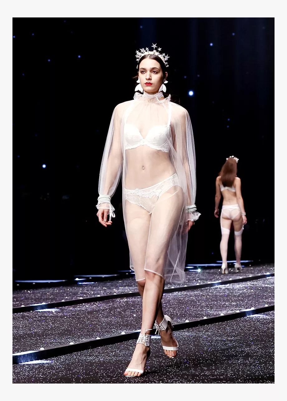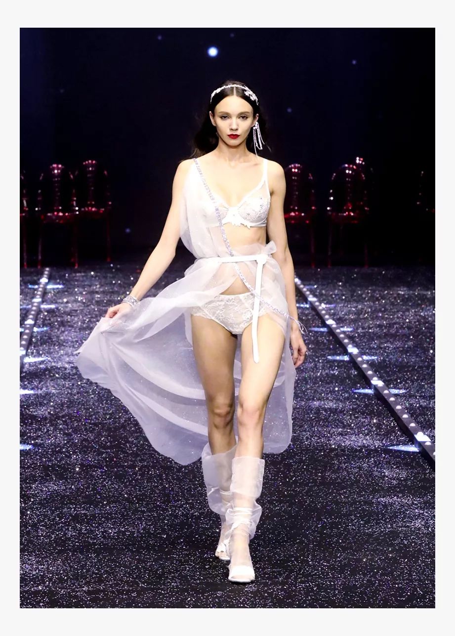 伴随着古典浪漫的旋律,身穿白色及浅色系内衣的超模如同远离世俗的精灵般惊喜登场。素雅柔和的色调自带治愈功能,看似低调,却更凸显都市女性年轻、干净、利落的气质。