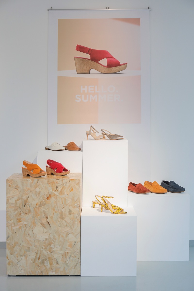 此次发布会现场依旧延续品牌一贯以来简洁大气的风格,营造令人舒适的氛围。首先, “THEN. NOW. ALWAYS”作为Clarks 2020年最重要的主题,以冲击力十足的文字呈现眼前,大胆宣告着品牌2020春夏新季对经典的传承以及对未来的憧憬。同时,Alexander Skarsgård 及Freida Pinto两位品牌大使的新季时尚大片展示于旁,延续了19秋冬的灵感,以60、70年代唱片封面的拍摄风格,将经典鞋履生动呈现,诠释了跨越时空的品牌风尚。