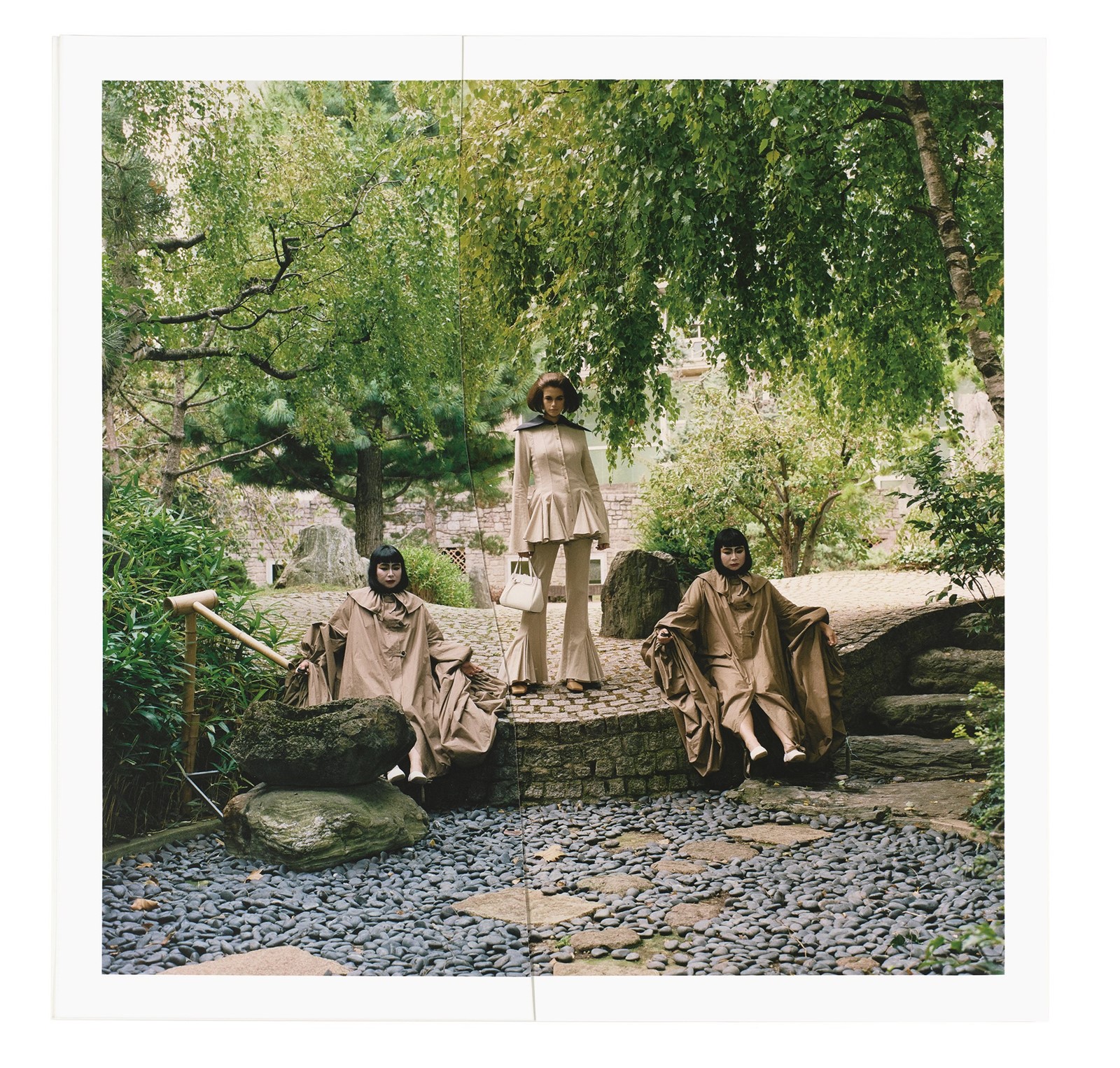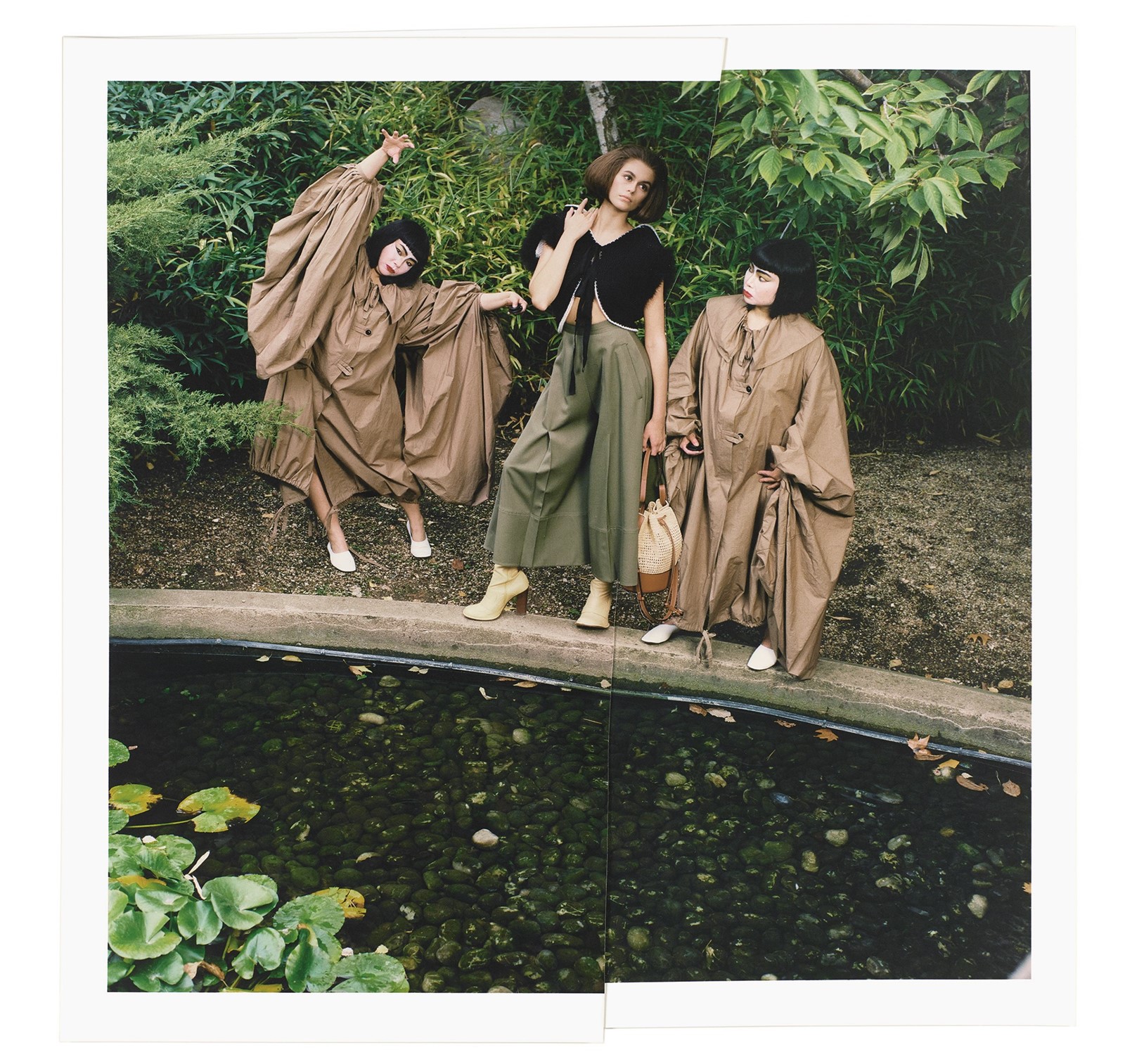 新生代超模 Kaia Gerber 与日本视觉艺术家 Fumiko Imano 携手拍摄 LOEWE 2020 春夏女装系列广告大片,惊艳演绎「ノグチと歌舞伎」。这一次 LOEWE 走进了日裔美籍建筑师野口勇(isamu noguchi)设计建造的 UNESCO GARDEN OF PEACE(联合国教科文组织和平花园)。 Fumiko Imano 以剪贴虚构的「双生姐妹」形象而闻名,此次这对「双生姐妹」再度露面,与化身复古少女的 Kaia Gerber 出现在别有禅意韵调的石桥、流水、松竹周围,呈现了一番侘寂之美。