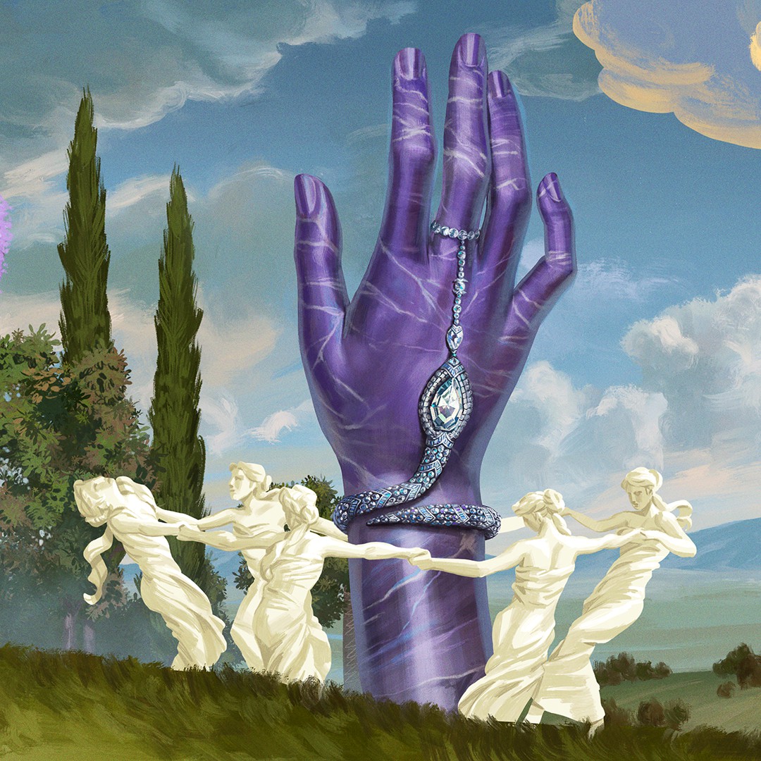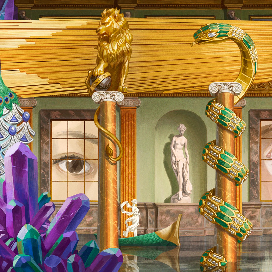 作为 BVLGARI 品牌发源地的罗马,同样也是巴洛克艺术的孕育之所。17 世纪,聚集在罗马的一众欧洲艺术名家,为「永恒之城」留存了诸多弥足珍贵的文化瑰宝。马德诺创造的圣彼得教堂,贝尼尼的圣特雷莎的狂喜,以及卡拉瓦乔的《埋葬基督》画作。从建筑、雕塑、绘画,延伸到服装、音乐乃至文学,戏剧性的线条、华丽的造型、繁复精致的工艺,巴洛克美学的标志特征游走于各个领域之间。