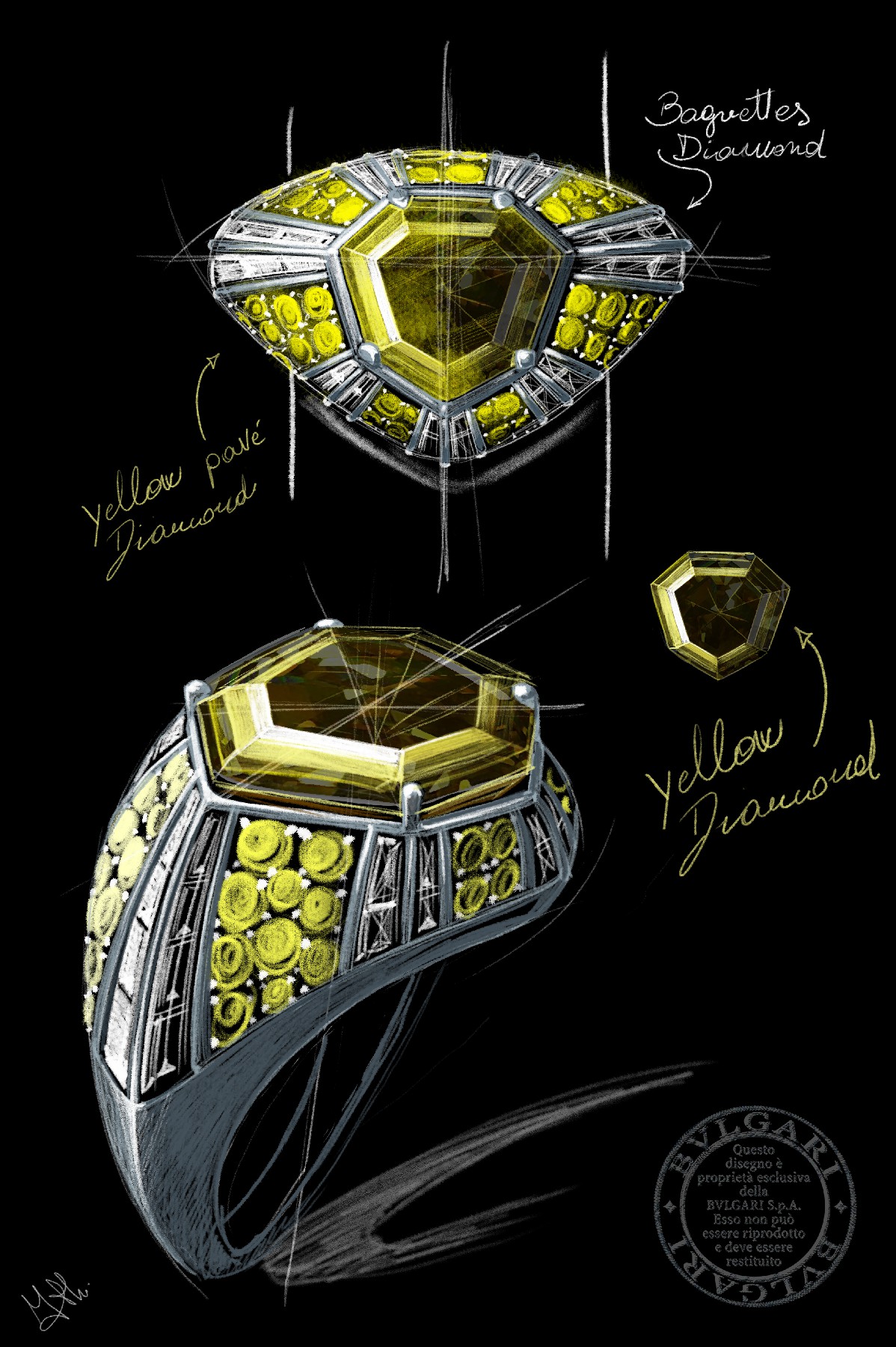 而罗马巴洛克风格的代表佳作之一,艺术家洛伦佐•贝尼尼的雕塑作品《圣特蕾莎的狂喜》,则成为了此次流光溢彩(Raggio di Luce)戒指的外形灵感源泉。几何图案的黄色与白色钻石交相辉映,大胆诠释着贝尼尼雕塑巨作中的情感张力,再现了象征上帝之光的光芒。