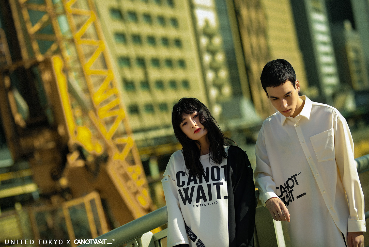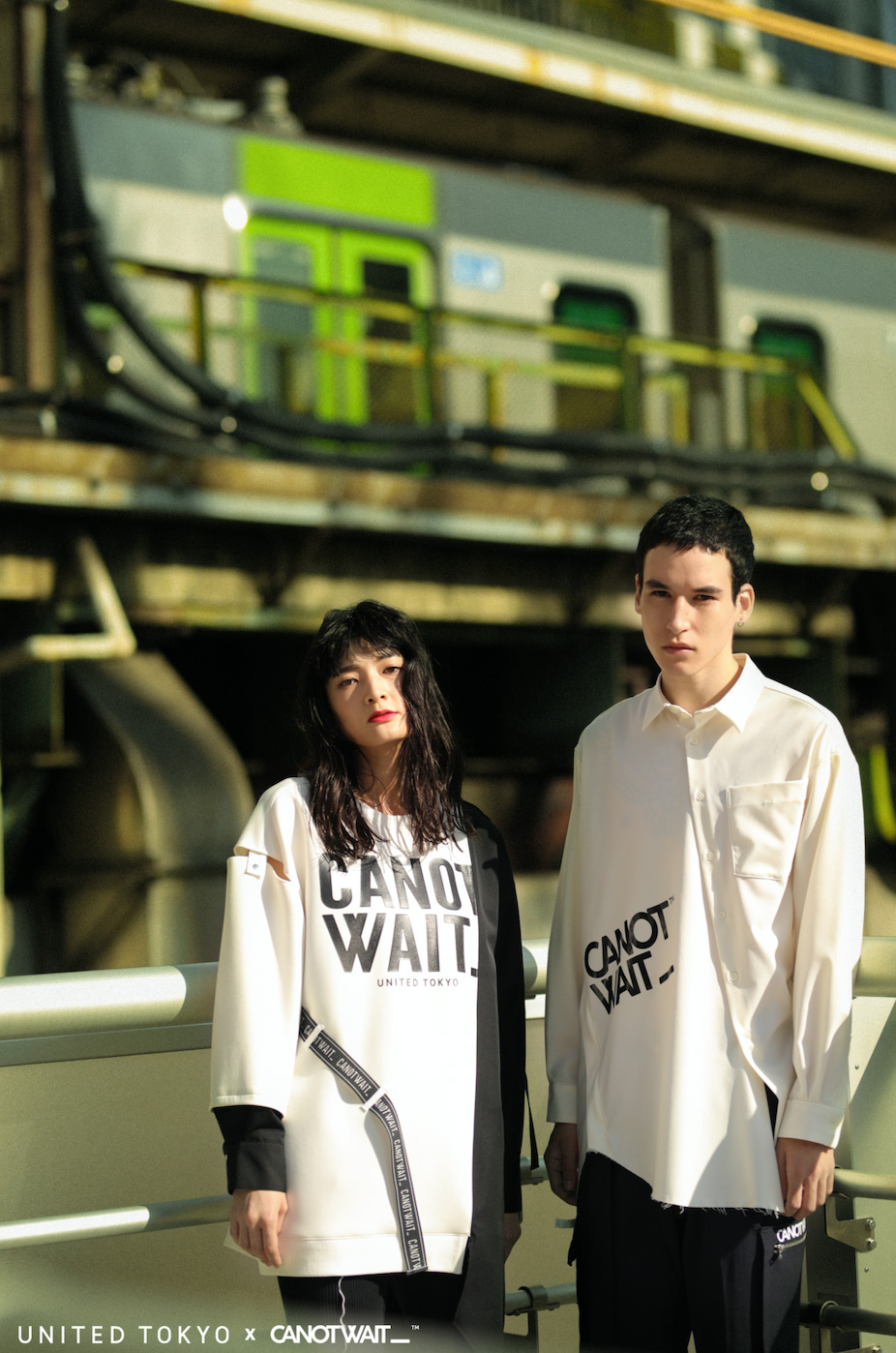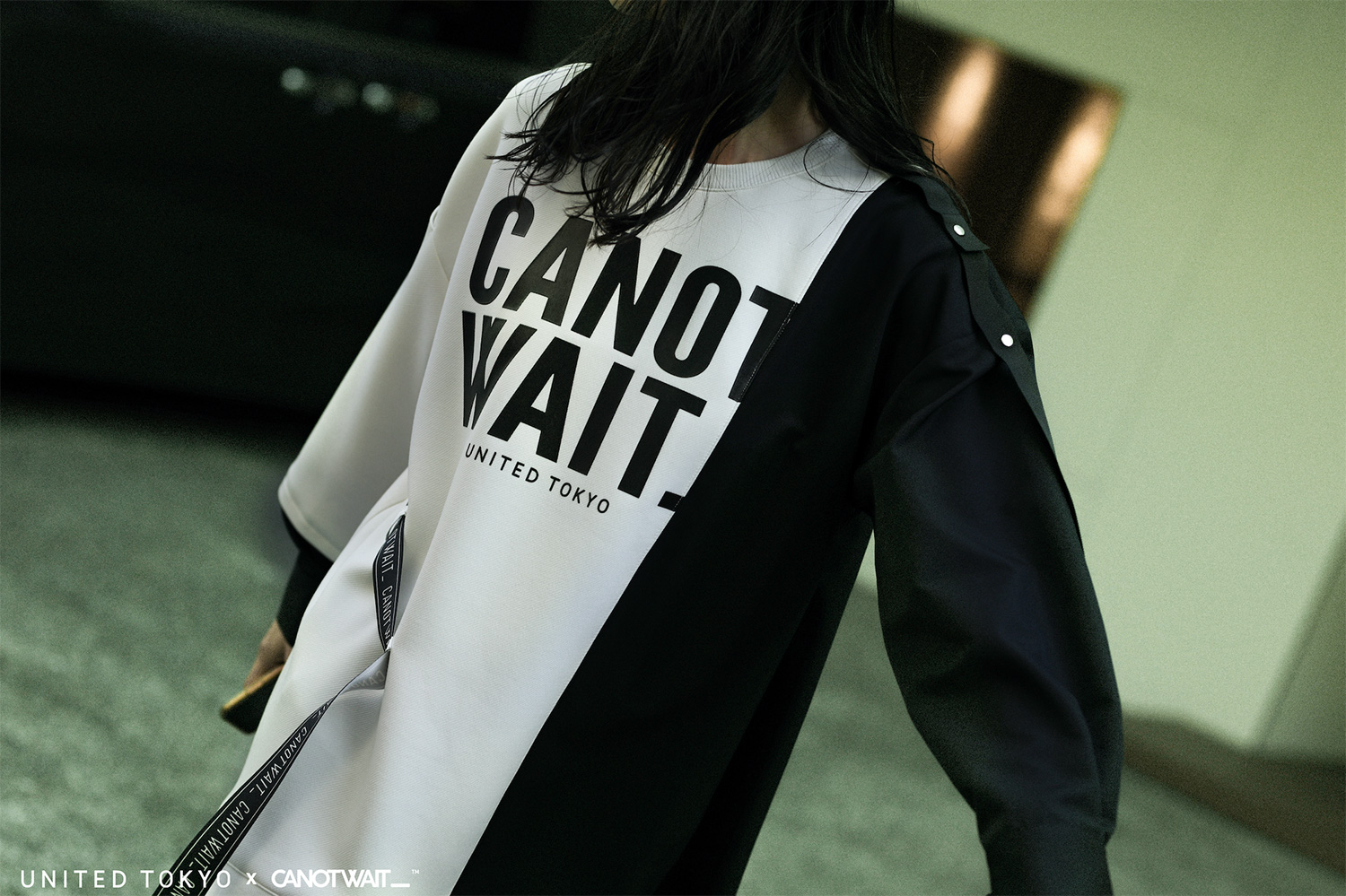 整个联名系列延续 UNITED TOKYO 全日产的面料和设计特性,并同时加入 CANOTWAIT_™ 的 logo 呈现方式,不规则剪裁卫衣、吊带长裙、拼接衬衫及帽衫、阔腿裤、通勤风衣等多个款式,在设计上采用了不对称的撞色、多种材质拼接等手法,体现来自东京街头的多元着装文化。