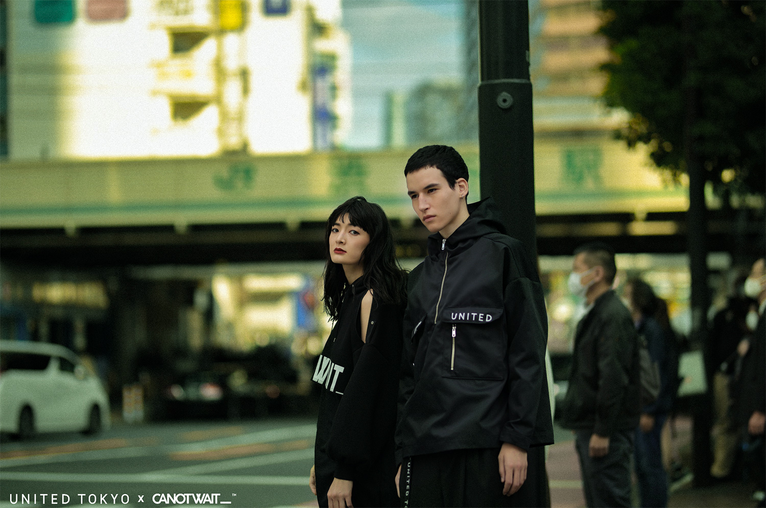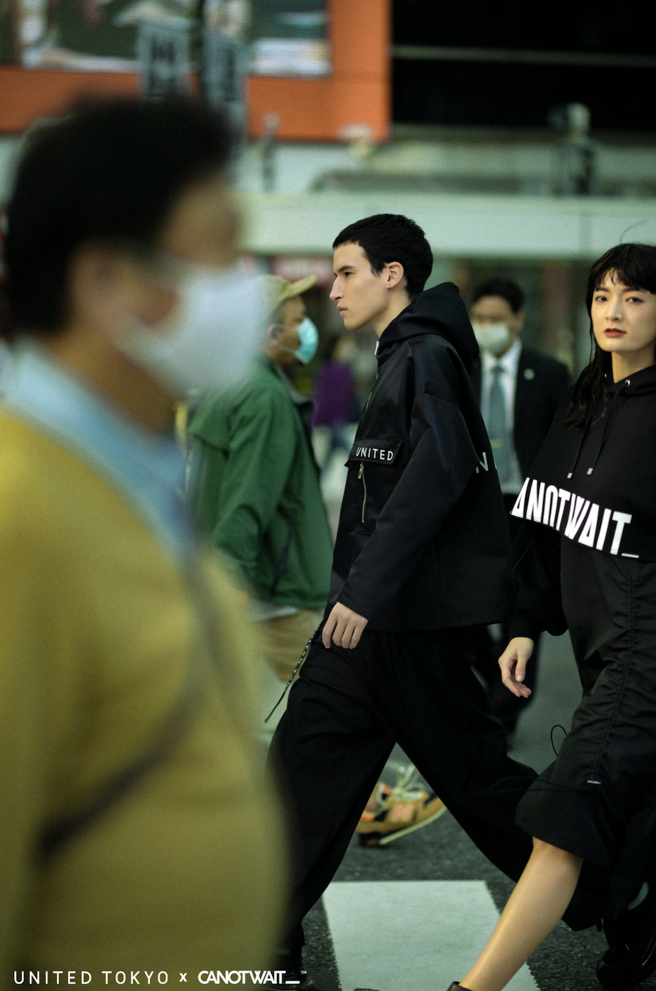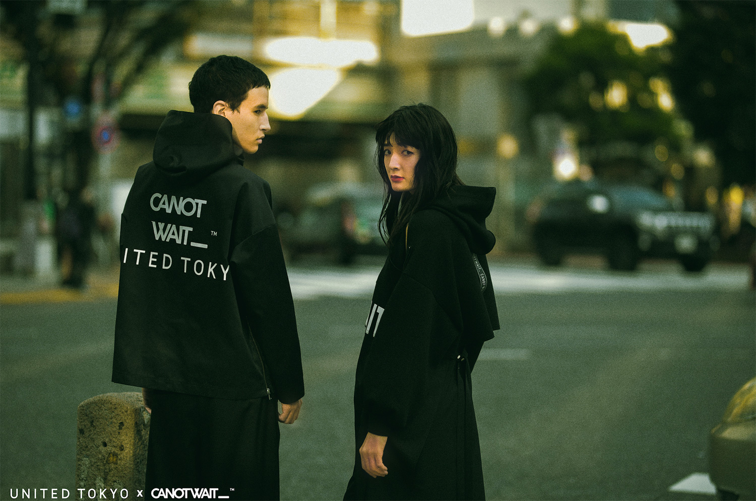 整个联名系列延续 UNITED TOKYO 全日产的面料和设计特性,并同时加入 CANOTWAIT_™ 的 logo 呈现方式,不规则剪裁卫衣、吊带长裙、拼接衬衫及帽衫、阔腿裤、通勤风衣等多个款式,在设计上采用了不对称的撞色、多种材质拼接等手法,体现来自东京街头的多元着装文化。