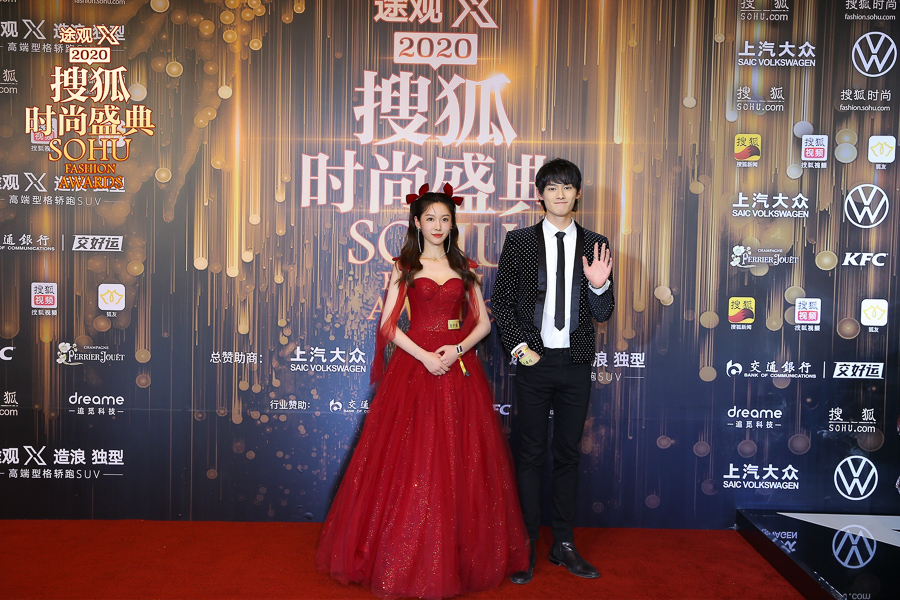 王子璇Blingbling地走向红毯,暗桃红色的蓬松纱裙被她穿出了无限少女感,与之搭配的发型也是“哪吒揪”,整个人是大写加粗的古灵精怪。与她一同走上红毯的汪卓成身穿亮片黑西装,让人移不开眼,今晚他俩的Dress Code是“亮闪闪”。