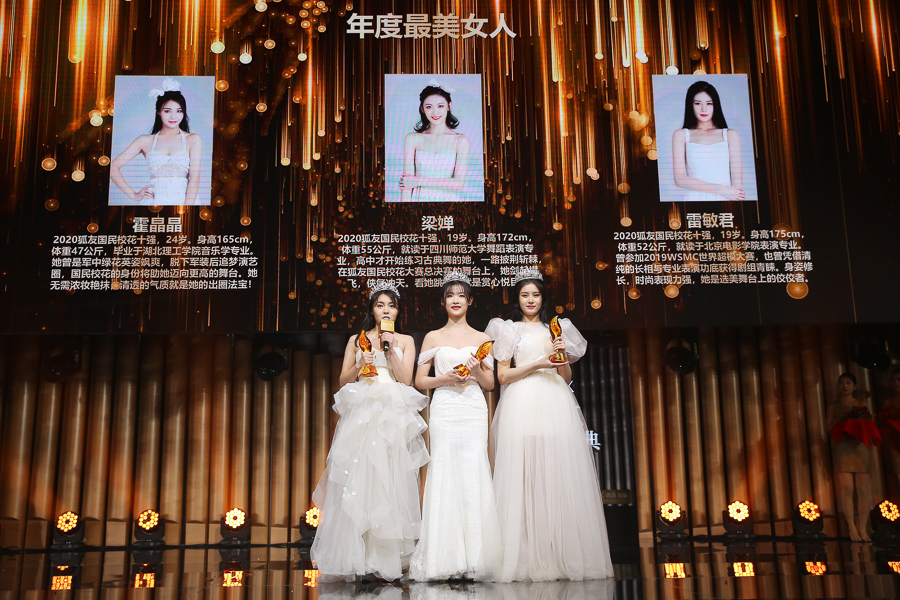 每年我们搜狐编辑部在这个时候都会进行激烈的PK,一起来探讨关于美的定义。“年度最美女人”就是搜狐对“美”和“魅力”的终极定义,今年的最美女人是从2020狐友国民校花中选出,最终梁婵、霍晶晶、雷敏君获得荣誉,由搜狐时尚总监樊逸君颁发荣誉。