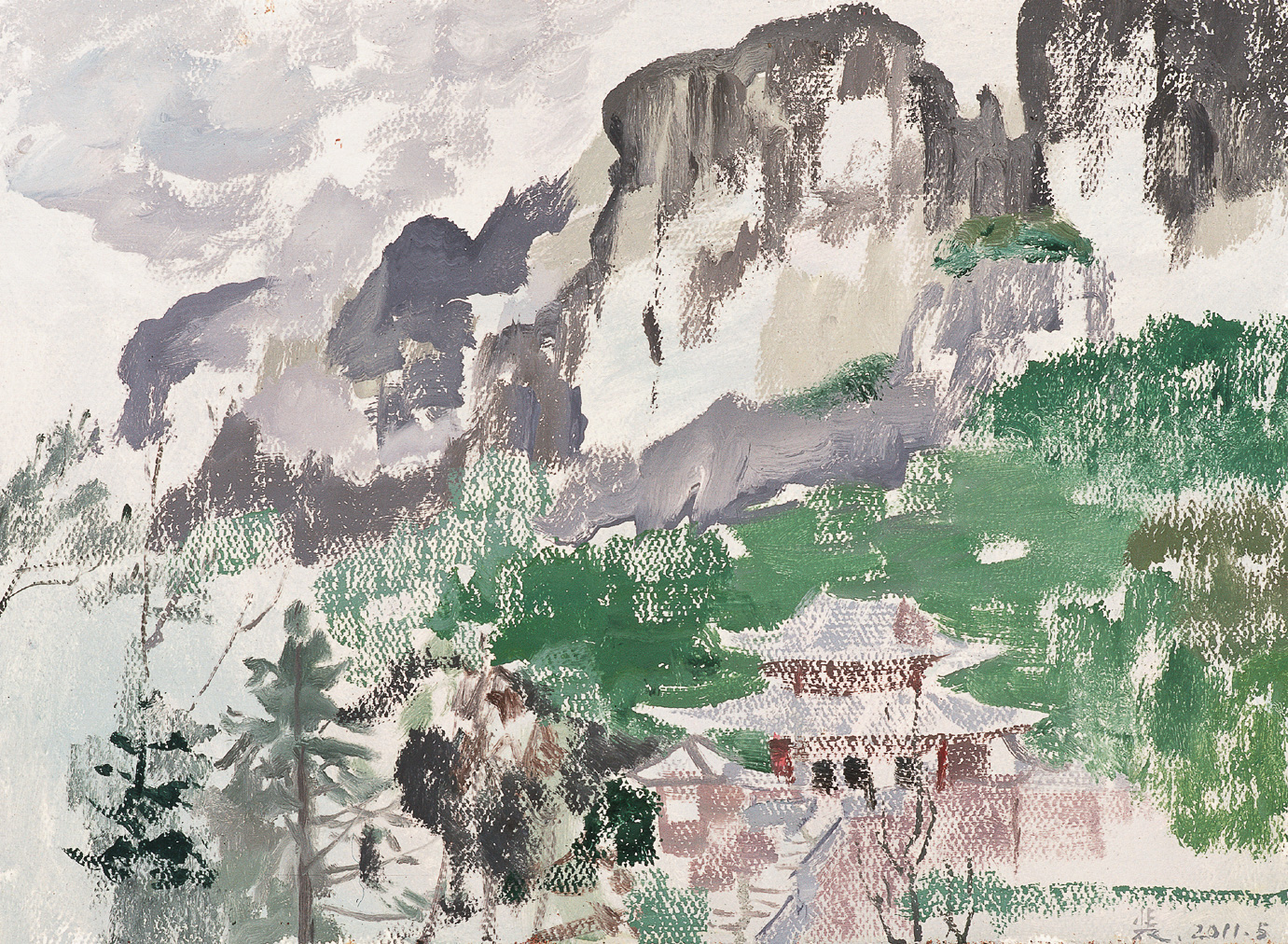 裴咏梅《灵通山-白云寺》布面油画 46x33cm 布面油画 2011