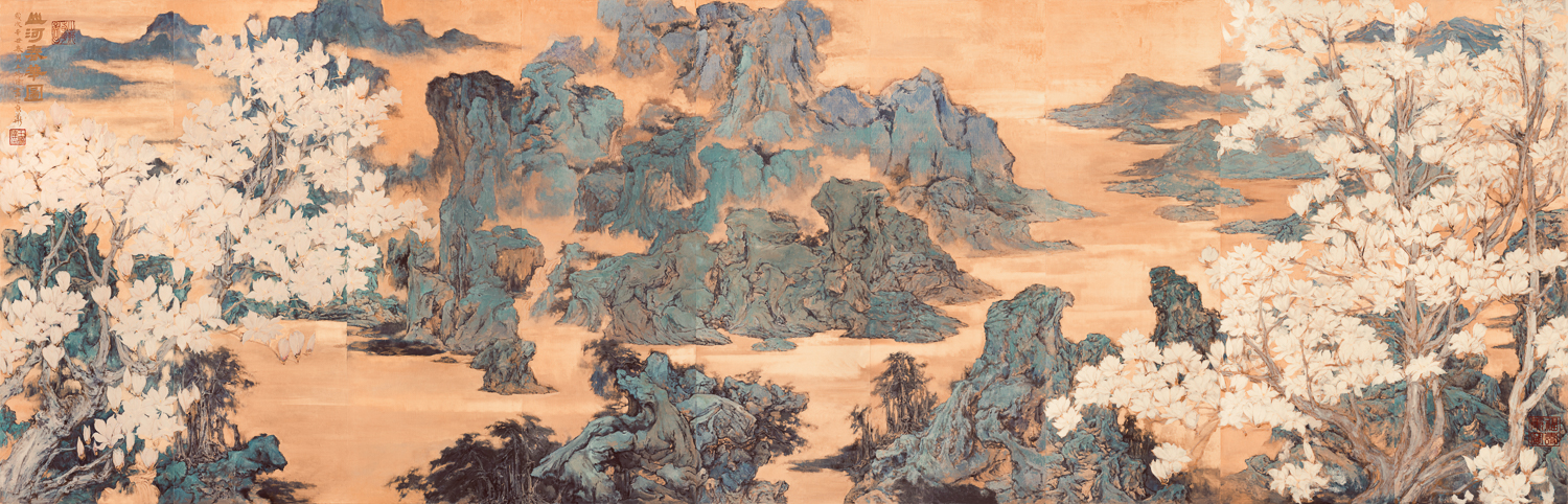王晓伟《山河春华图》10mX3.2m,丙烯,矿物质颜料2020年