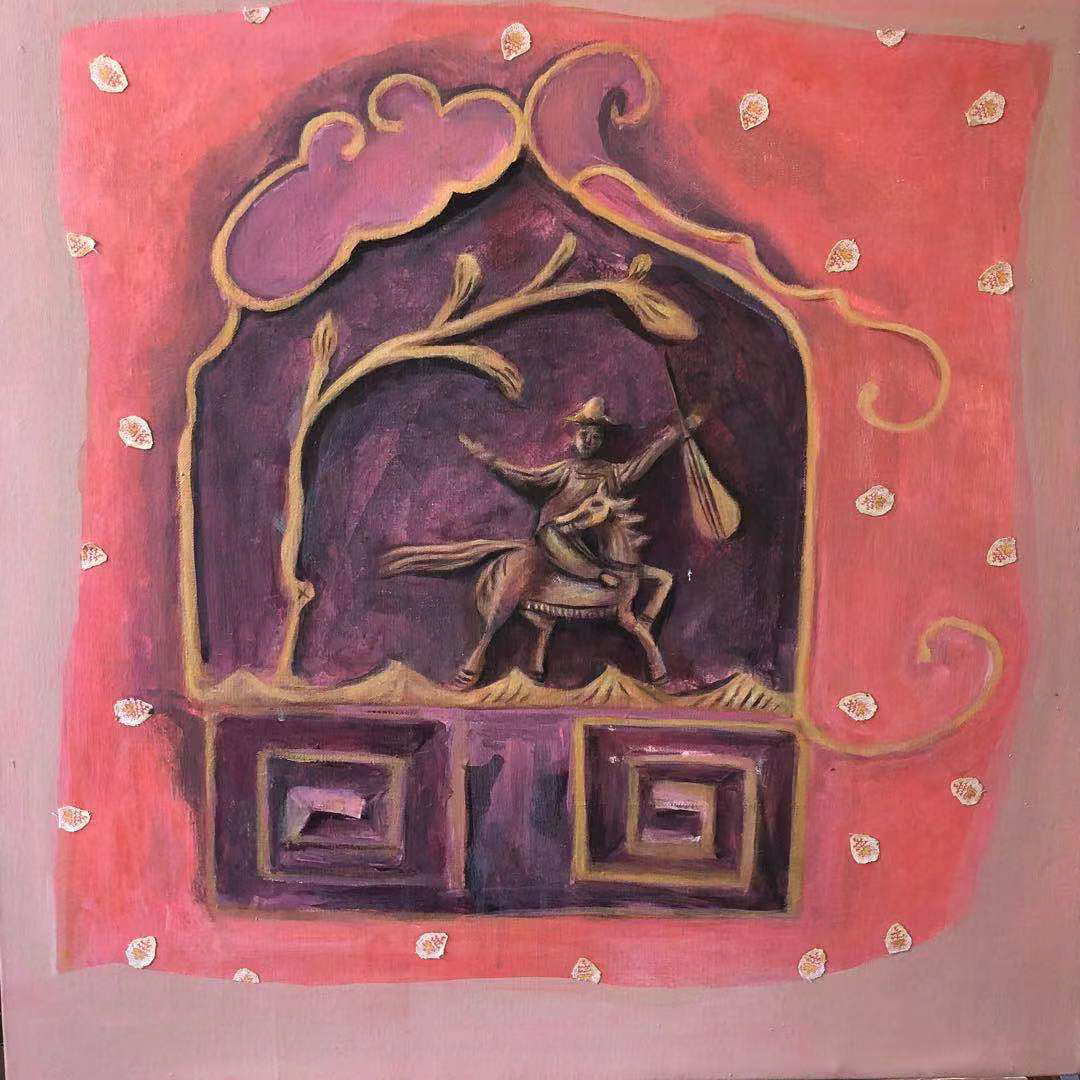 王滢露 柯尔克孜少年的故事 60X 60 cm 布面丙烯+布料拼贴 2019